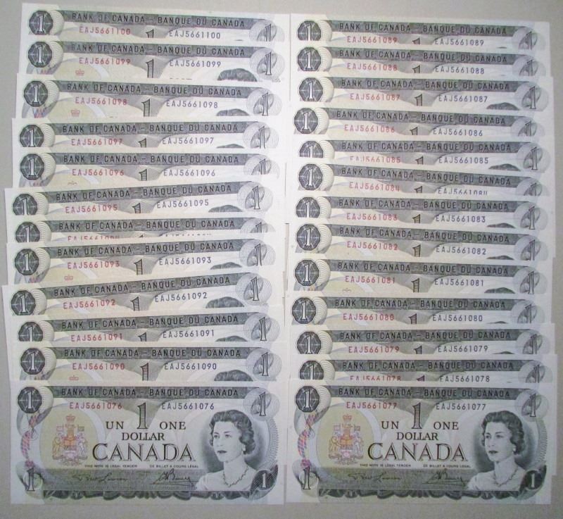 25 Consecutive 1973 Bank Of Canada $1 Bank Notes - Lawson/Bouey - Trends Value $100