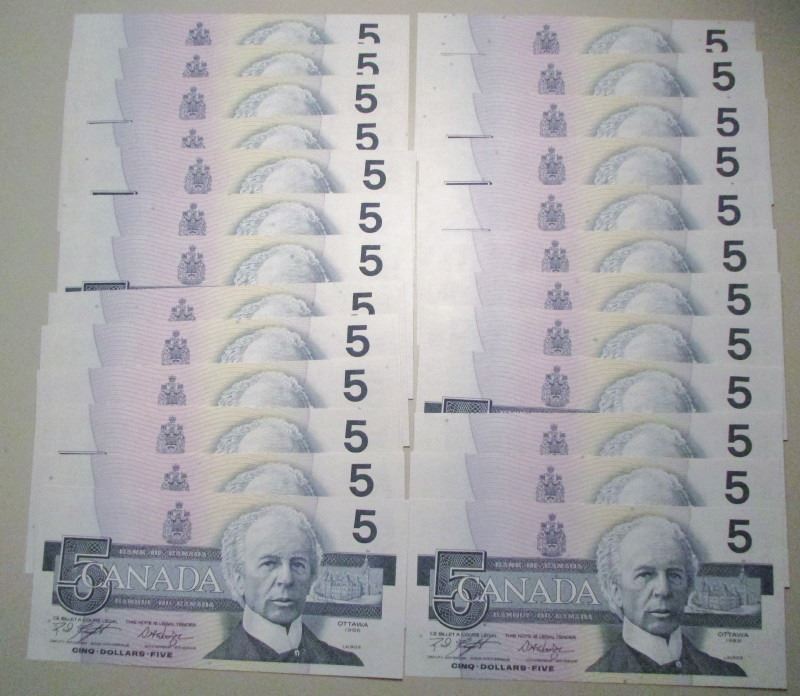 25 Consecutive 1986 Bank Of Canada $5 Bank Notes - UNC - ANT Series - Trends Value $300