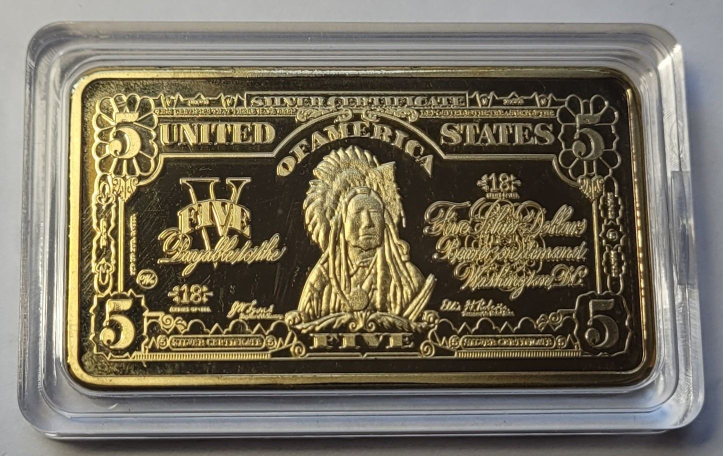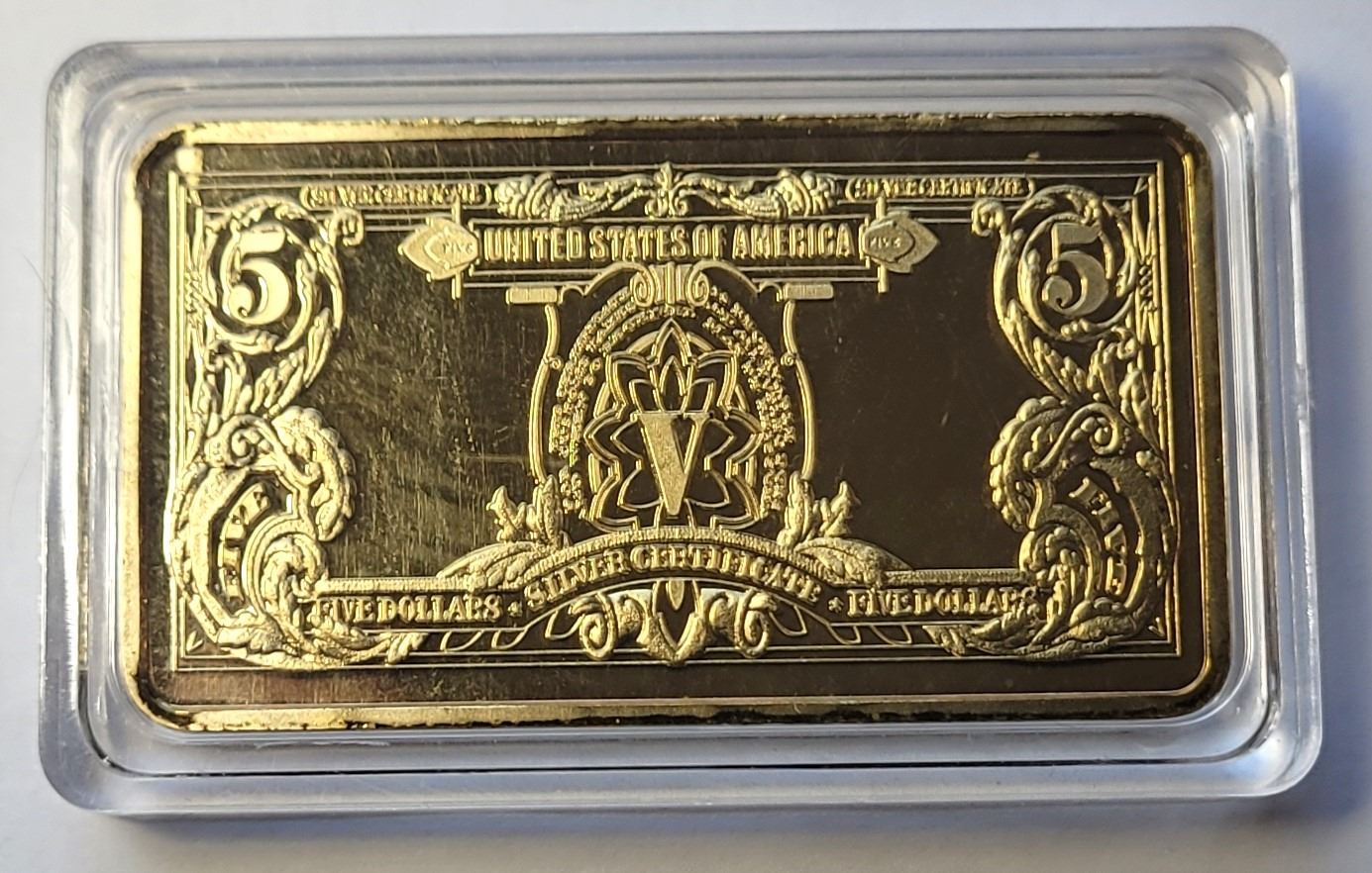 25) ENCAPSULATED GOLD TONE USA $5.00 BANKNOTE, NO