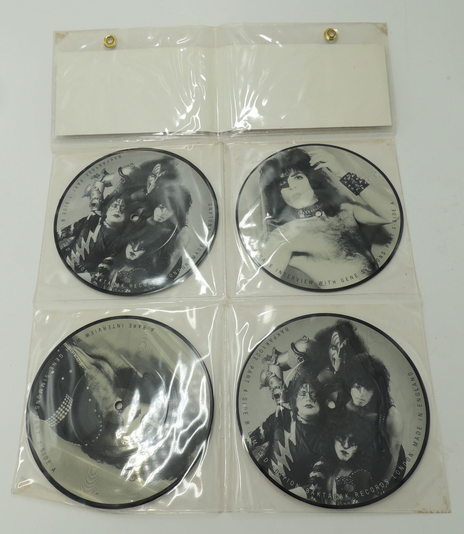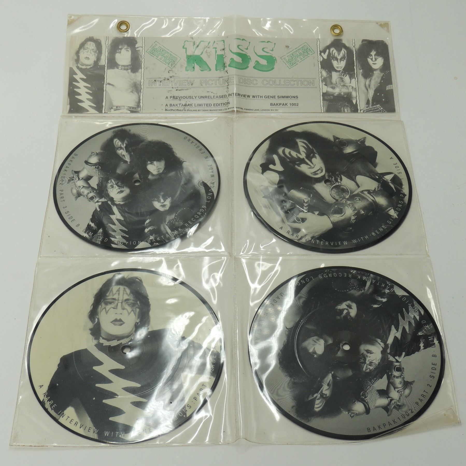 UK LONDON PRESS SET OF 4 INTERVIEW KISS PICTURE DISC DISCS DISKS KISS ROCK BANK IN DISPLAY BAG