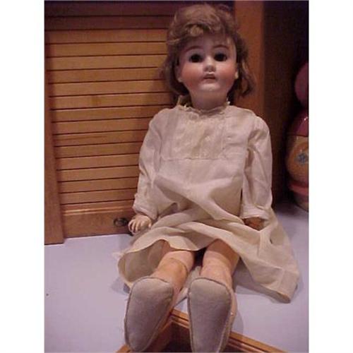 This doll has a good bisque head except for a very faint line on the neck in the back. It may be a manufacturer's flaw or a hairline. It is too faint for the camera and does not go anywhere. Should not affect value much.Doll is marked Walkure 250 K H. The head was made by Kestner for Kley Hahn about 1920. She has brown sleep eyes. The composition boidy is rough. The fingers and toes are ok but the butt,neck and chest show much wear as does one leg. I will send more pictures if you request them. The body is definitely repairable and could be a gorgeous doll. The wig is old mohair and the dress is old but not in very good condition.