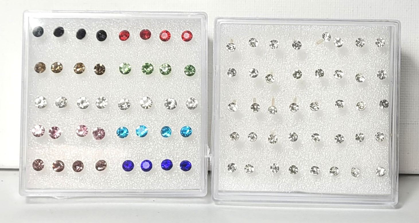 EARRINGS,  20 ARE CLEAR AND 20 ARE MULTI COLORED.  JEWELERY