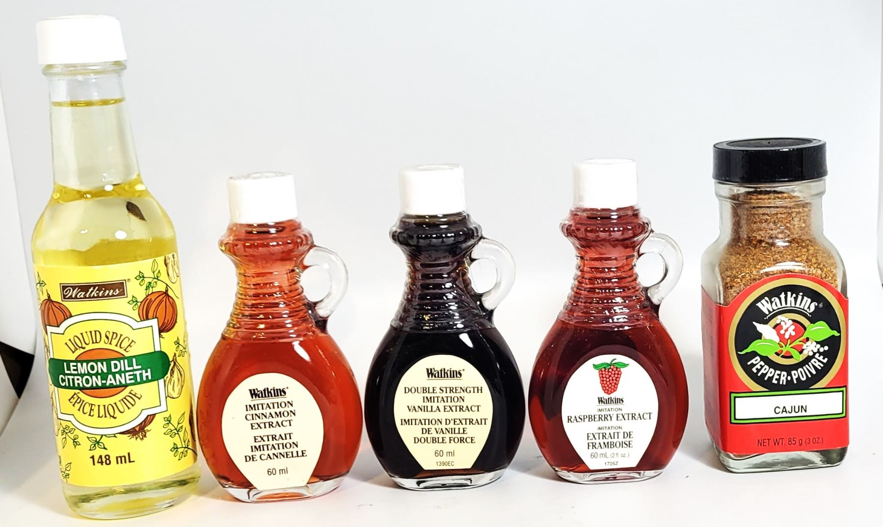 SPICED PEPPER, LEMON-DILL LIQUID SPICE AND VANILLA, RASPBERRY AND CINNAMON EXTRACTS.FOOD