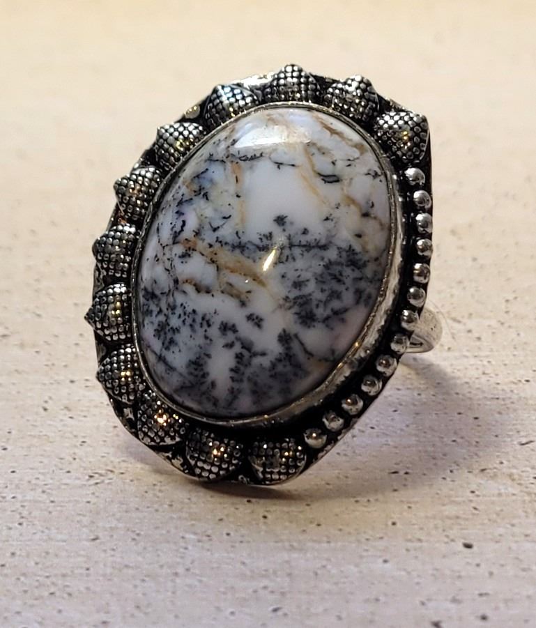 UNIQUE HEARTS AND BEADS SETTING STAMPED 925, SZ 9.5. JEWELERY