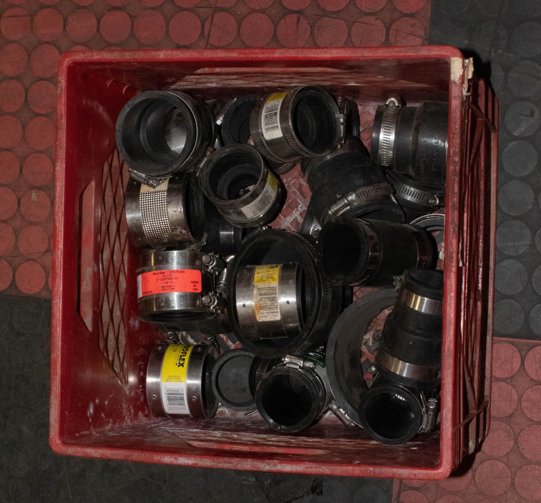 COUPLING - PLASTIC (PL) TO CAST IRON (CI) TO STAINLESS (SS) TO COPPER (C): (1) 4' x 4"; (1) 4" x 1 1/2". (4) 2" x 2"; (8) 2" x 1 1/2"; (1) 2" CAP. (1) 1 1/2" x 1 1/2"; (1) 1 1/2" x 1 1/2" 90° ELBOW; (6) 1 1/2" x 1 1/4"; (1) 1 1/2" **ALL ITEMS MUST BE REMOVED BY 5PM SATURDAY, JUNE 17TH 2023. ALL REMAINING ITEMS WILL BE SUBJECT TO A $6.00 PER DAY STORAGE CHARGE. ANY ITEMS REMAINING AFTER MONDAY, JULY 3RD, 2023 WILL BE CONSIDERED FORFEITED. NO REFUNDS WILL BE ISSUED FOR FORFEITED ITEMS. TO SCHEDULE A PICK UP APPOINTMENT CLICK HERE