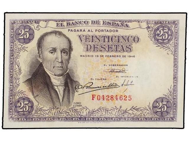 25 Pesetas. 19 Febrero 1946. Flórez Estrada. Serie F. Ed-D51a. MBC+.