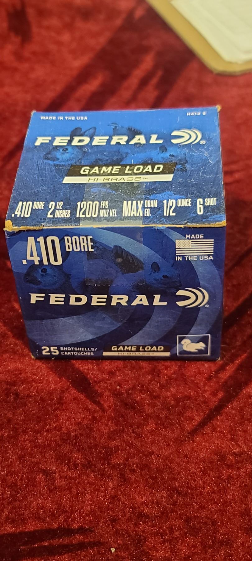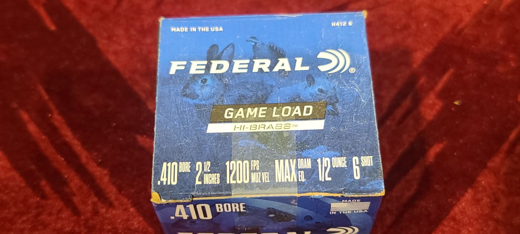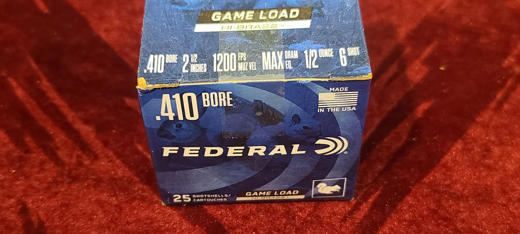25 ROUNDS OF FEDERAL .410 2 1/2" 1200FPS 1/2OZ #6 SHOT GAME LOAD