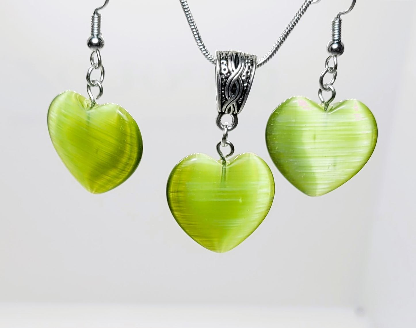 DROP EARRINGS ON NICKLE FREE FISHHOOK WIRES AND PENDANT IS ON 18" SNAKE CHAIN. JEWELLERY