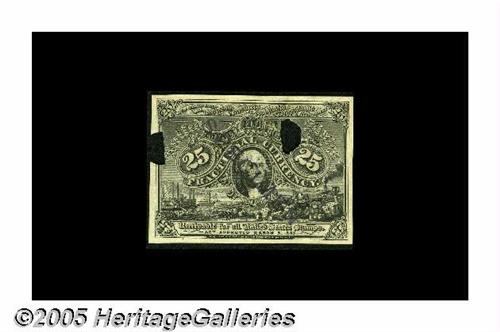 <B>25¢ Second Issue Experimental Note Choice New.</B></I> Identical to the previous lot, except that the left-hand cancel falls on the edge of the note.
