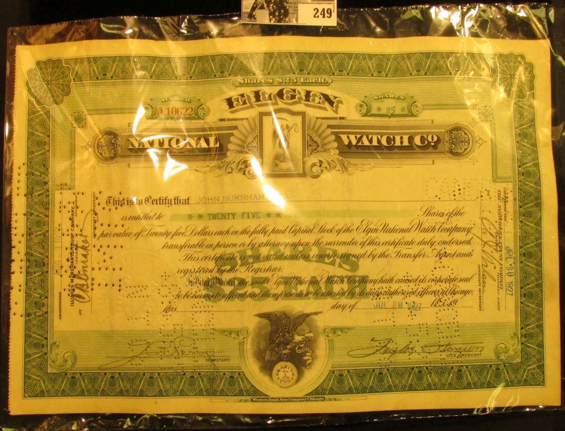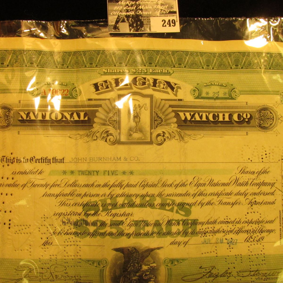 25 Shares "Elgin National Watch Co." July 30, 1927. Hole cancelled.