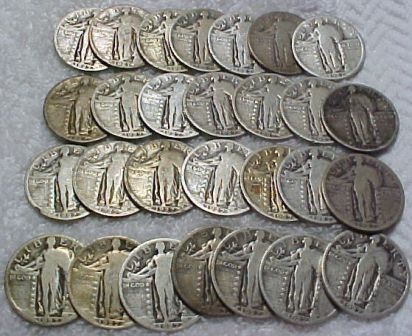 A Lot of 25 Standing Liberty Quarters Partial date to Readable Date