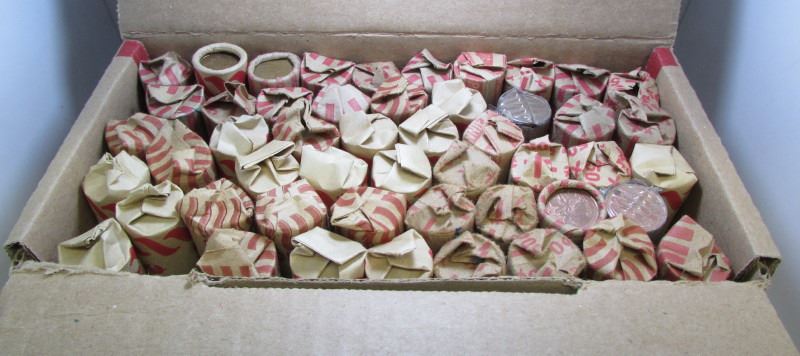 $25 Face In Unsearched Canadian Penny Rolls In Bankers Box