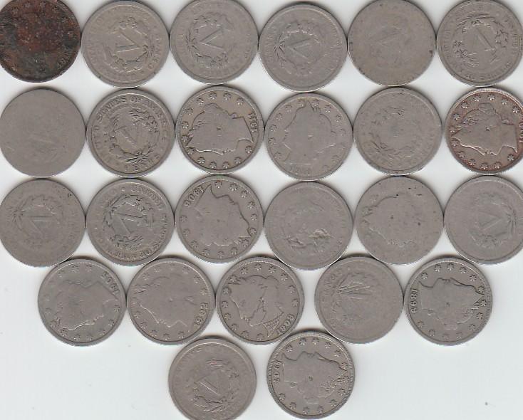 25 V LIBERTY HEAD NICKELS MIX DATES
