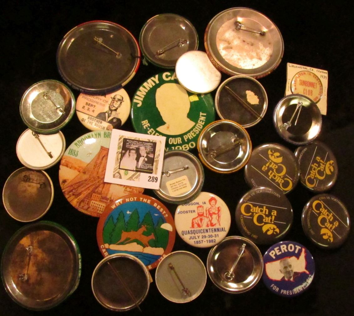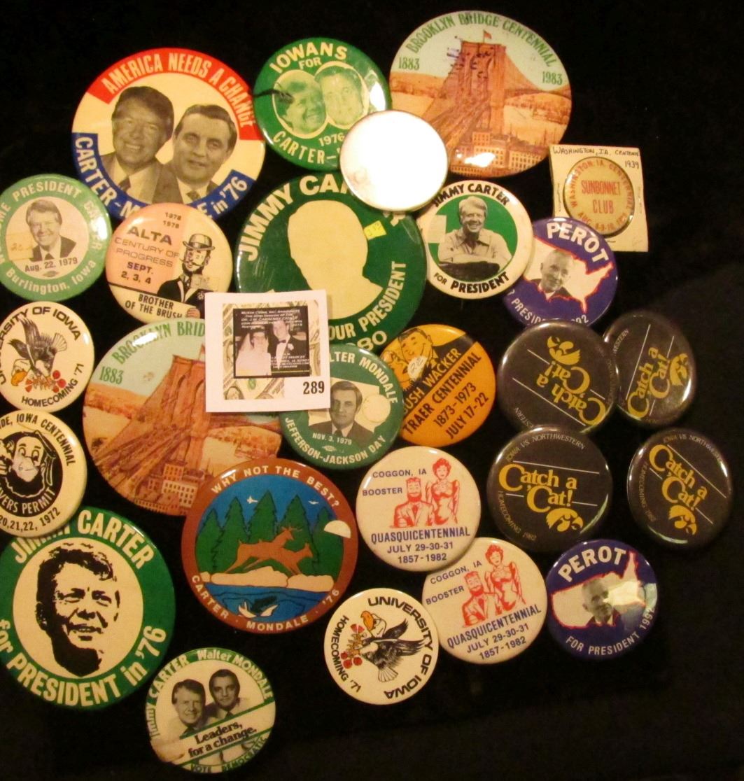 (25) Various Political & Local Pin-backs including Iowa and Iowa Hawkeyes.
