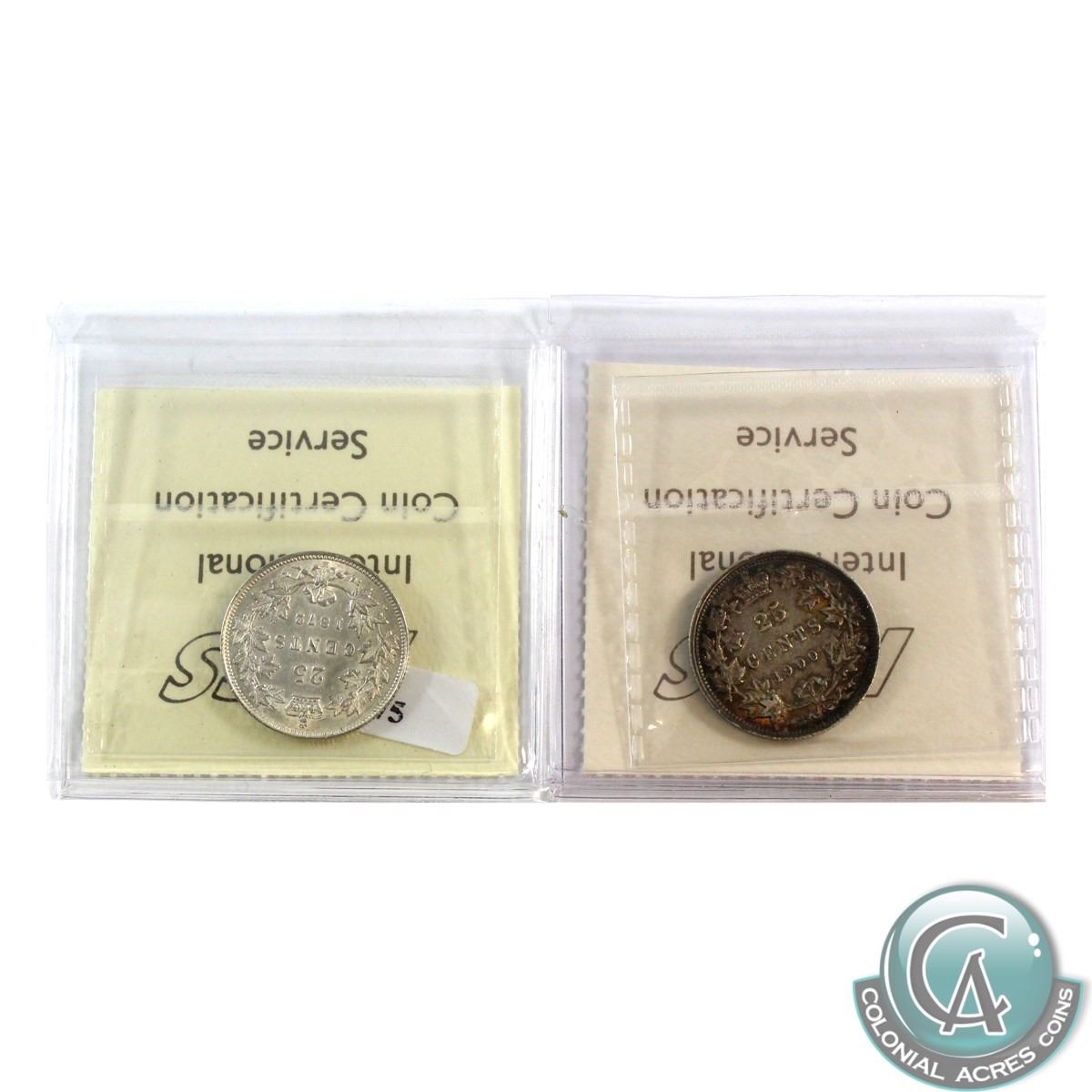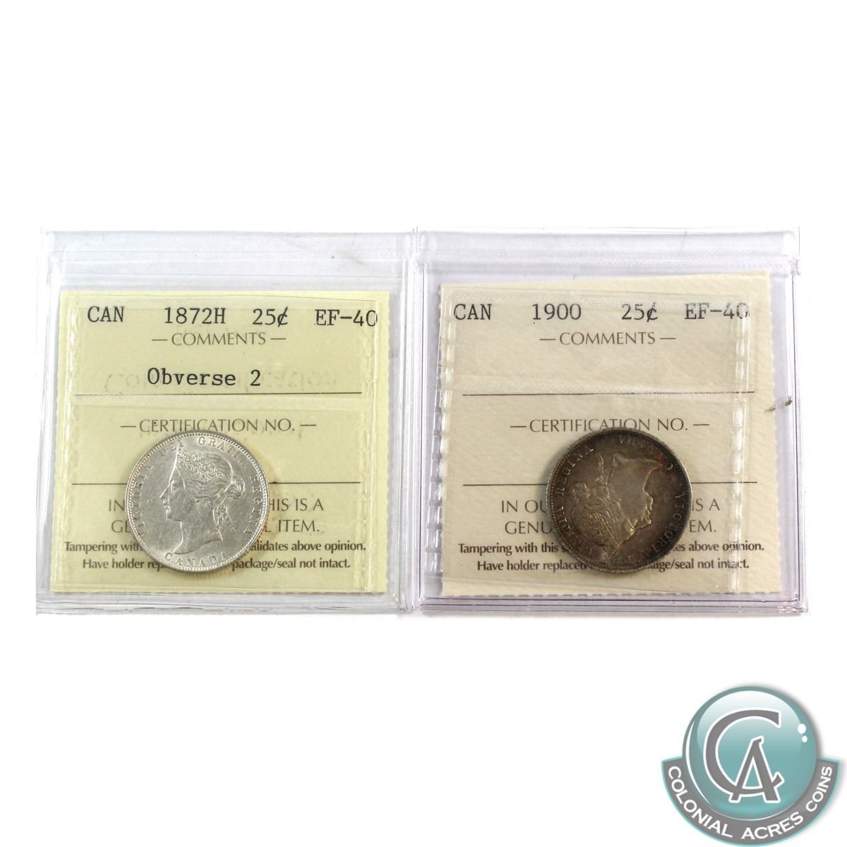 25-cent 1872H Obv. 2, & 1900 both ICCS Certified EF-40. 2pcs