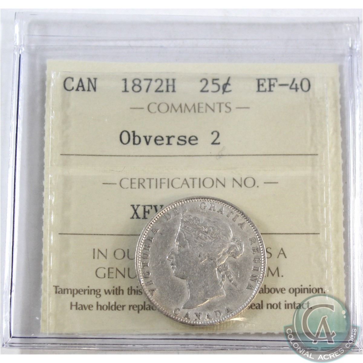 25-cent 1872H Obverse 2 ICCS Certified EF-40