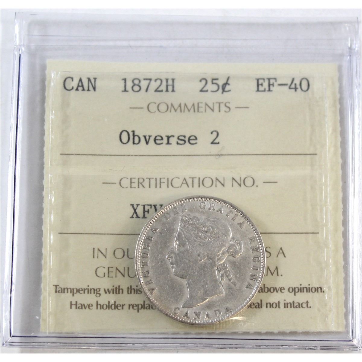 25-cent 1872H Obverse 2 ICCS Certified EF-40