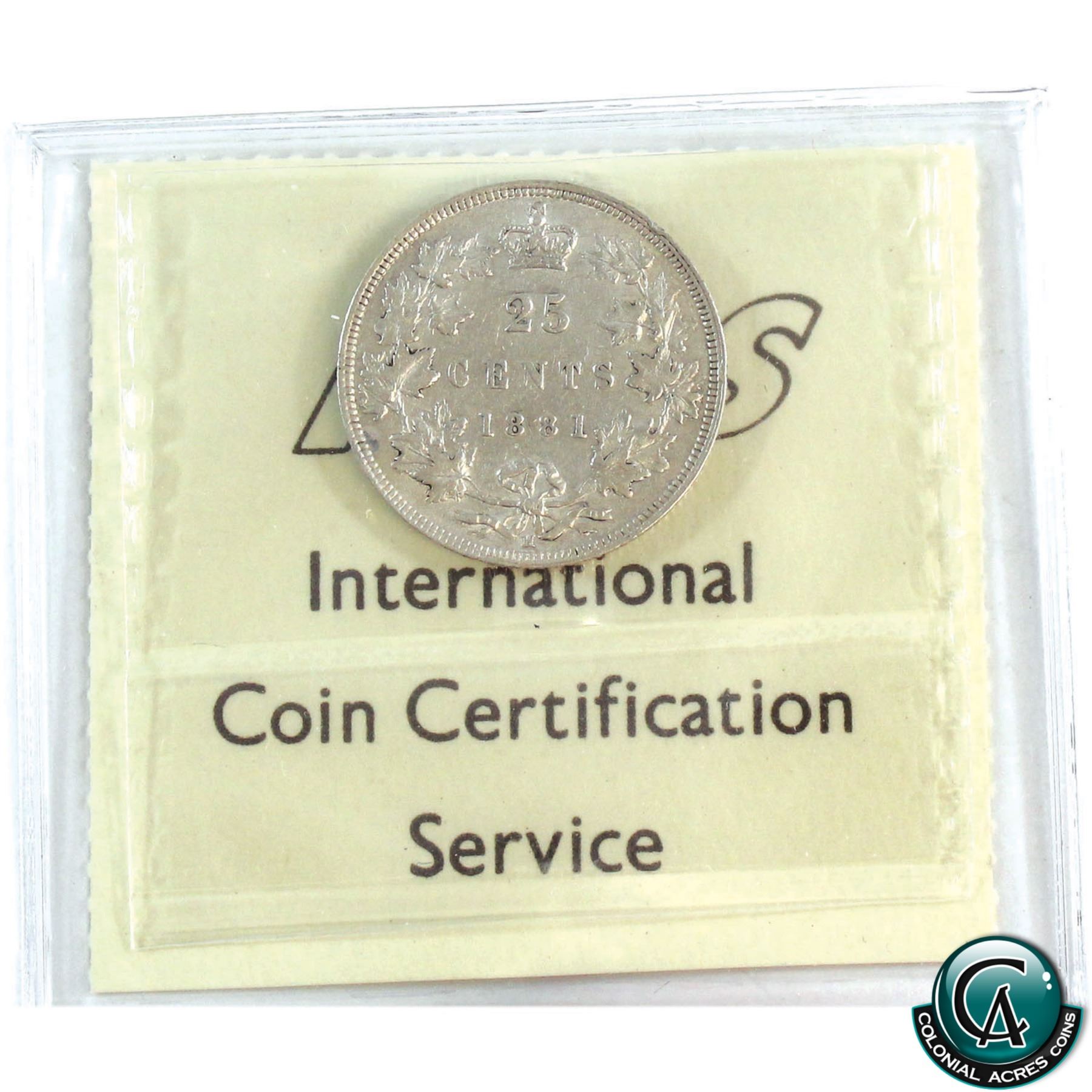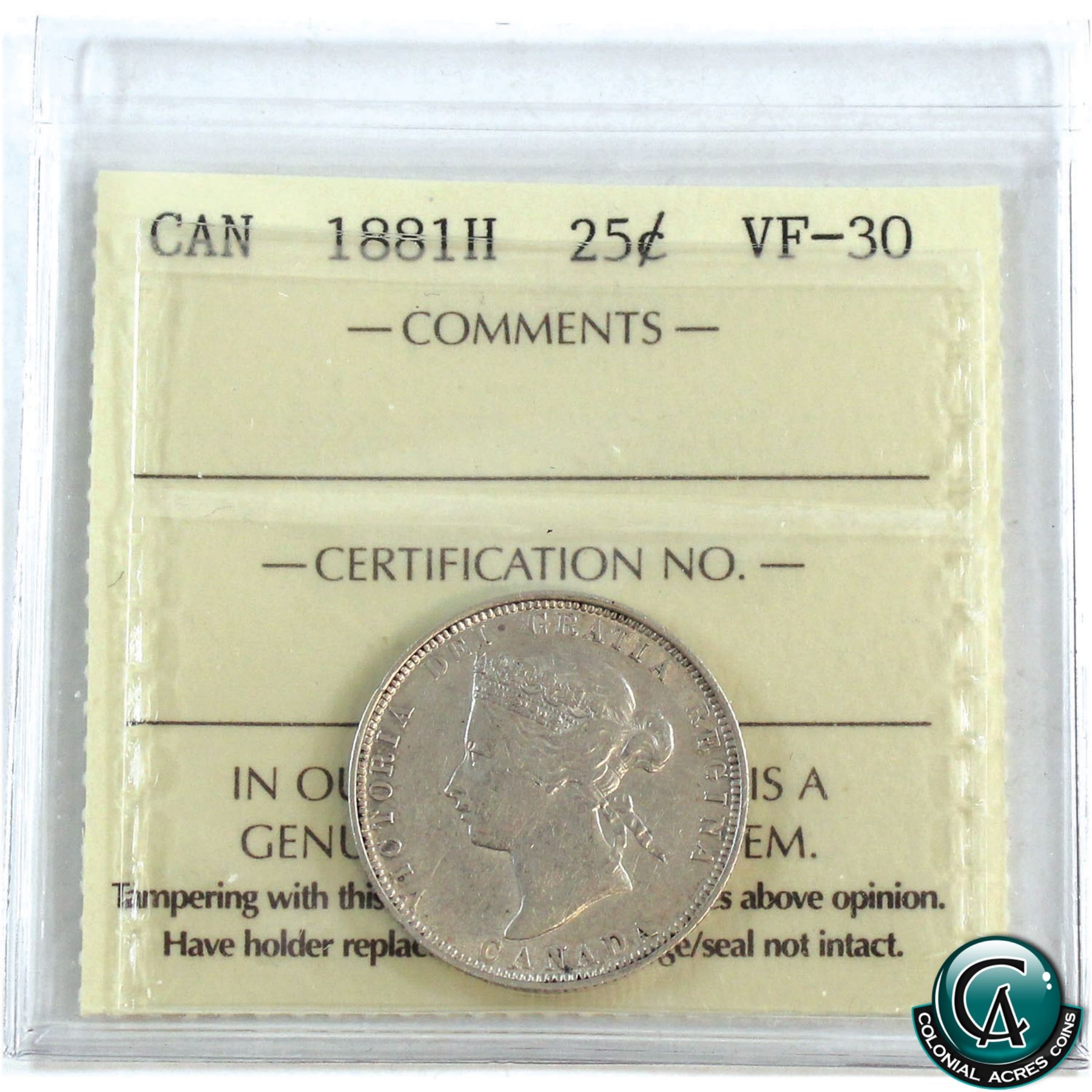 25-cent 1881H ICCS Certified VF-30. A nice mid-grade coin with some original mint luster around the rim.