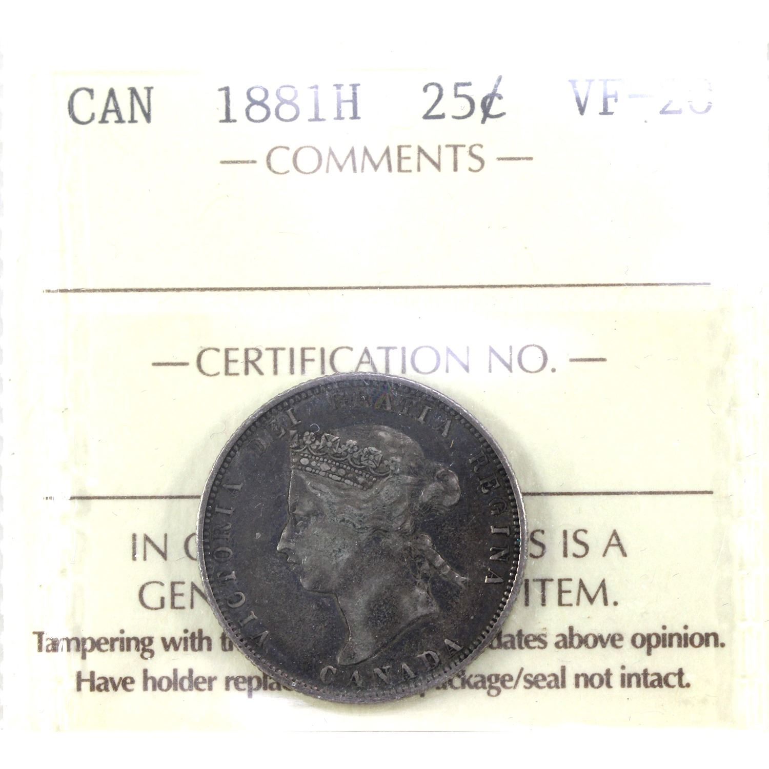 25-cent 1881H ICCS VF20. Deep Russet Hues Throughout