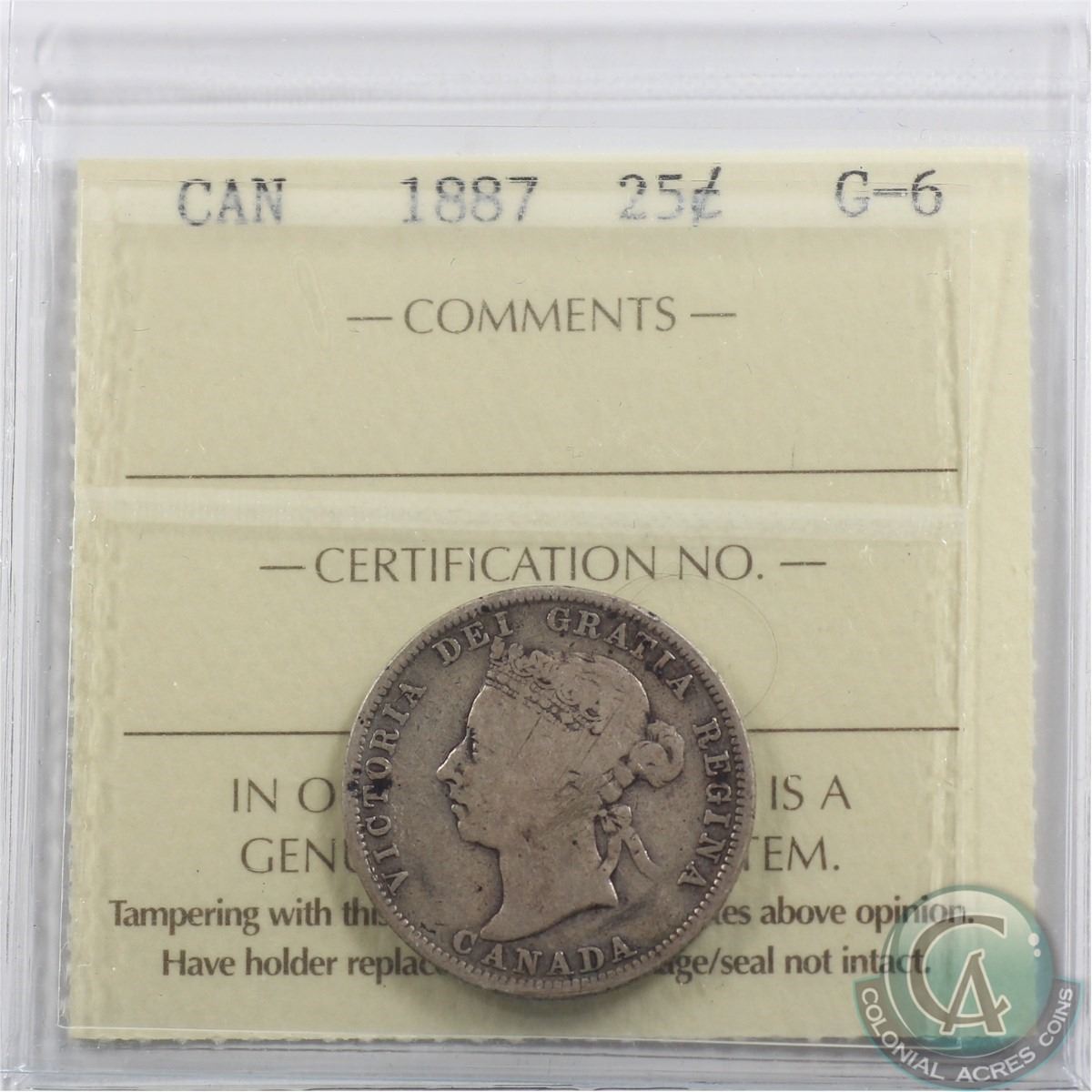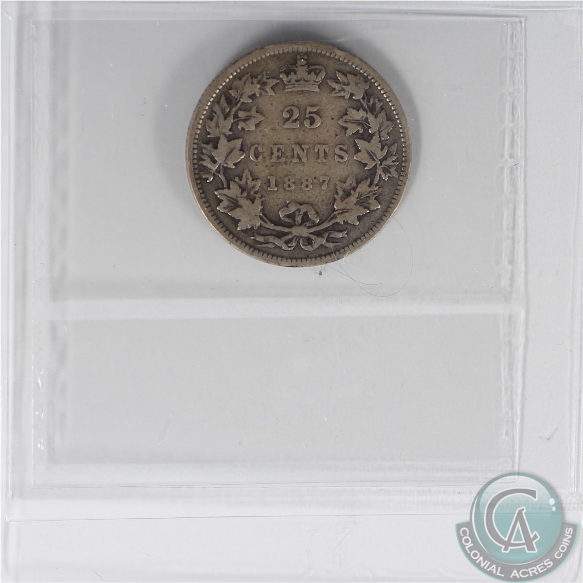 25-cent 1887 ICCS Certified G-6 *Key Date* Coin has full date, lettering and border.