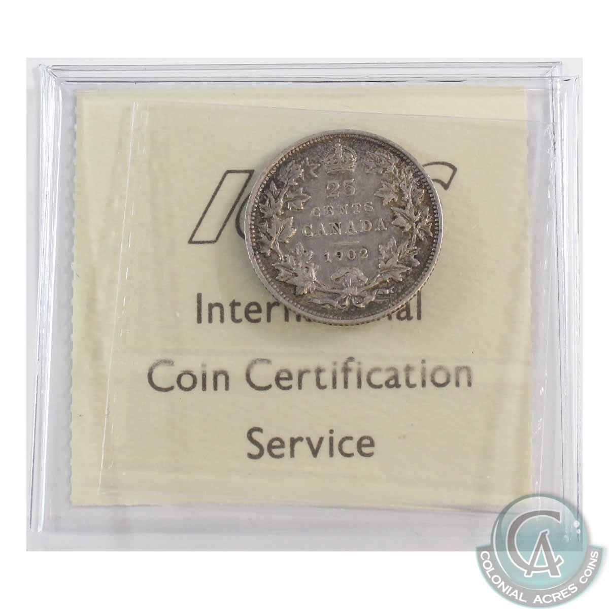 25-cent 1902 ICCS Certified EF-40. A nice lightly toned coin with underlying luster.