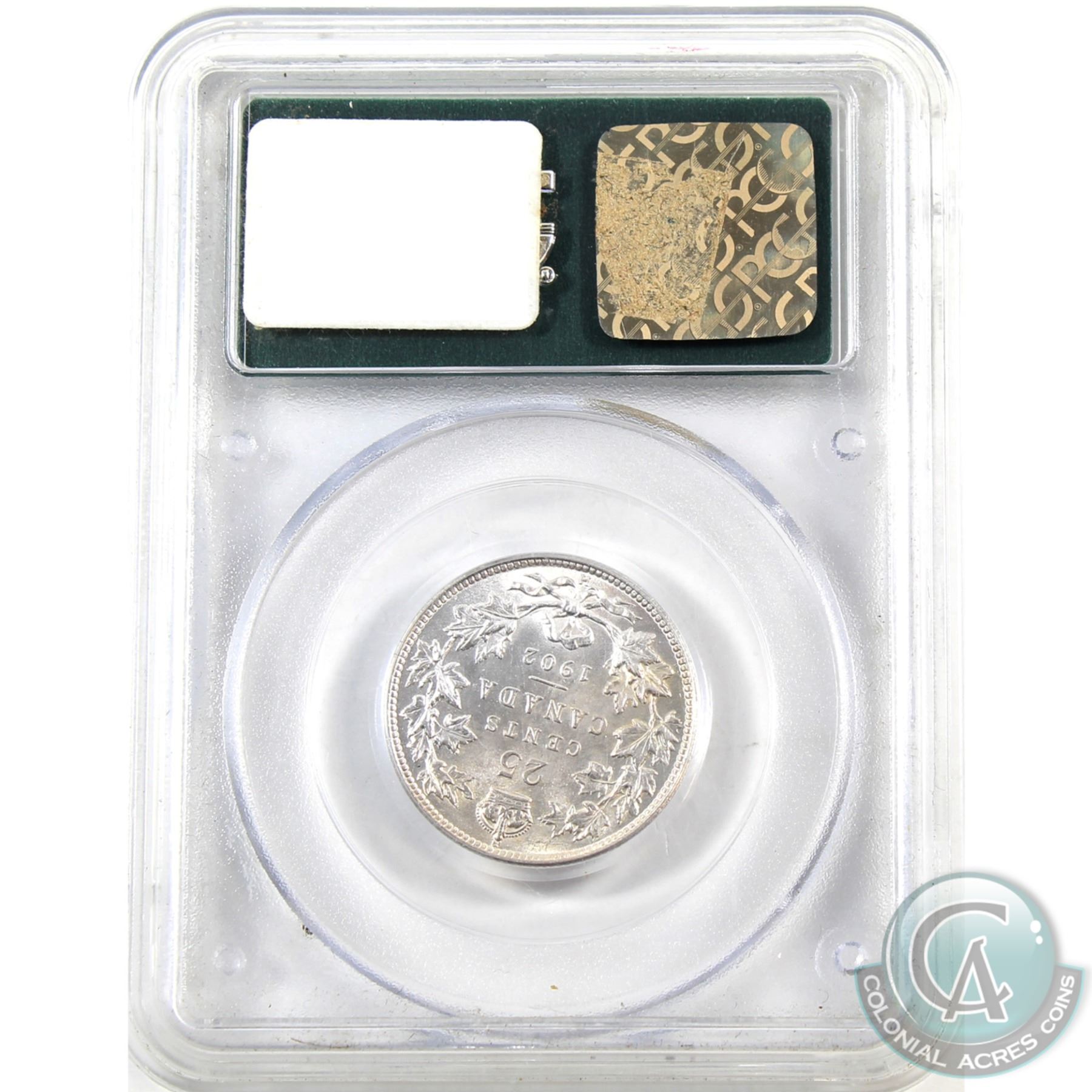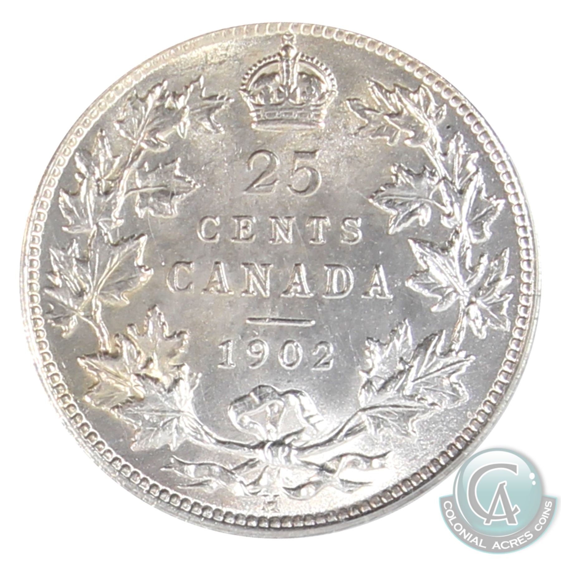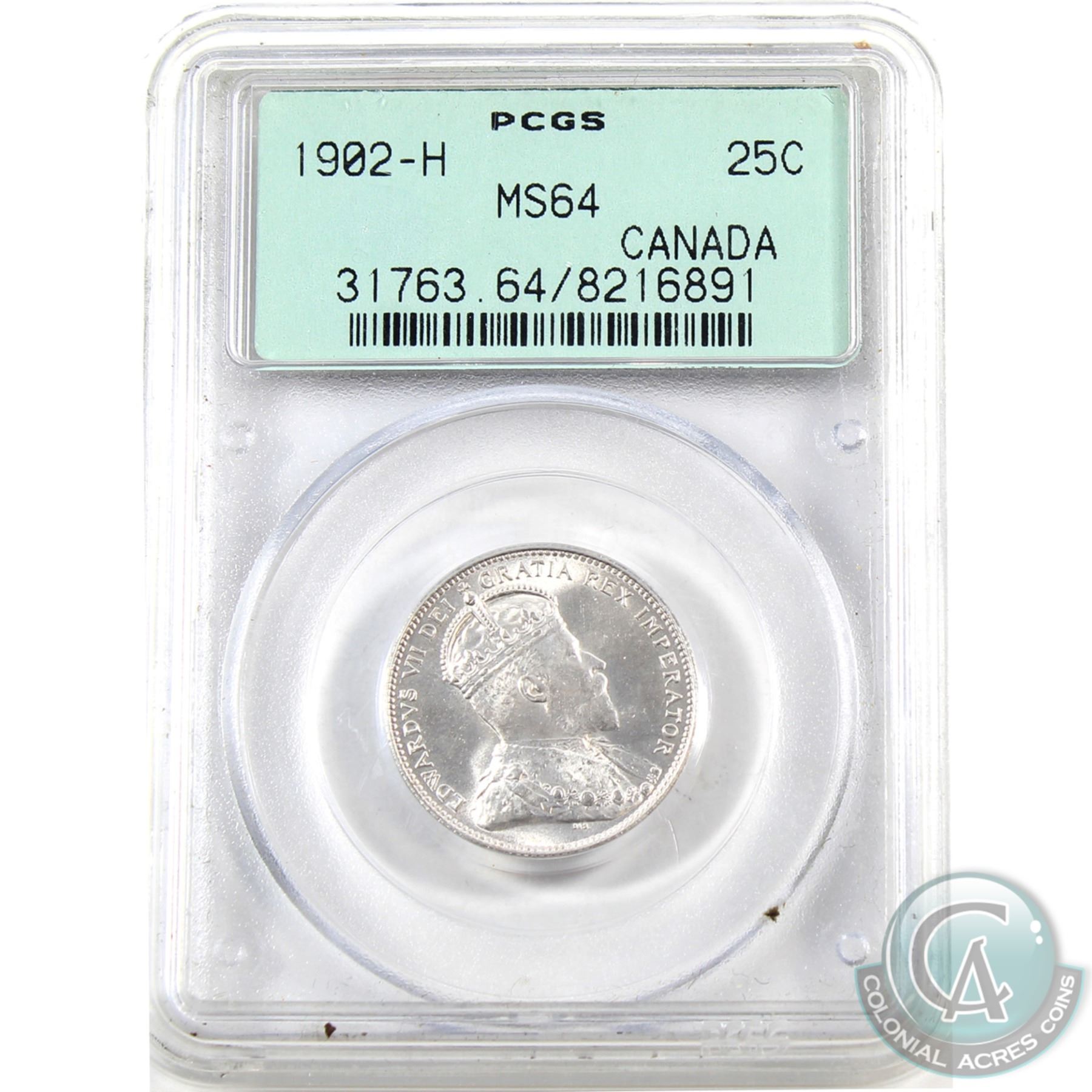 25-cent 1902H PCGS MS-64! Bright vibrant coin with exceptional strike qialities. (In old style green label holder)