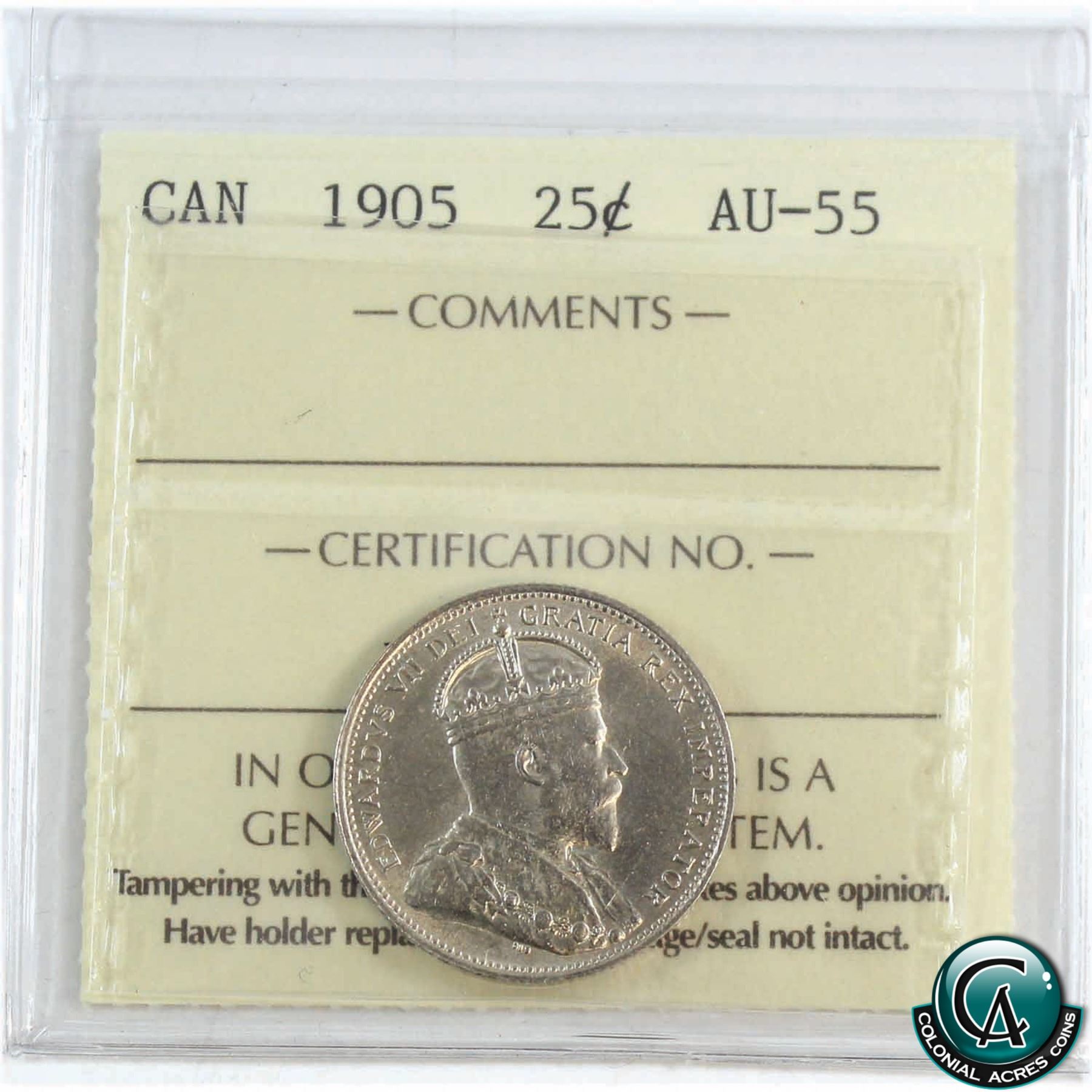 25-cent 1905 ICCS Certified AU-55! *KEY DATE*