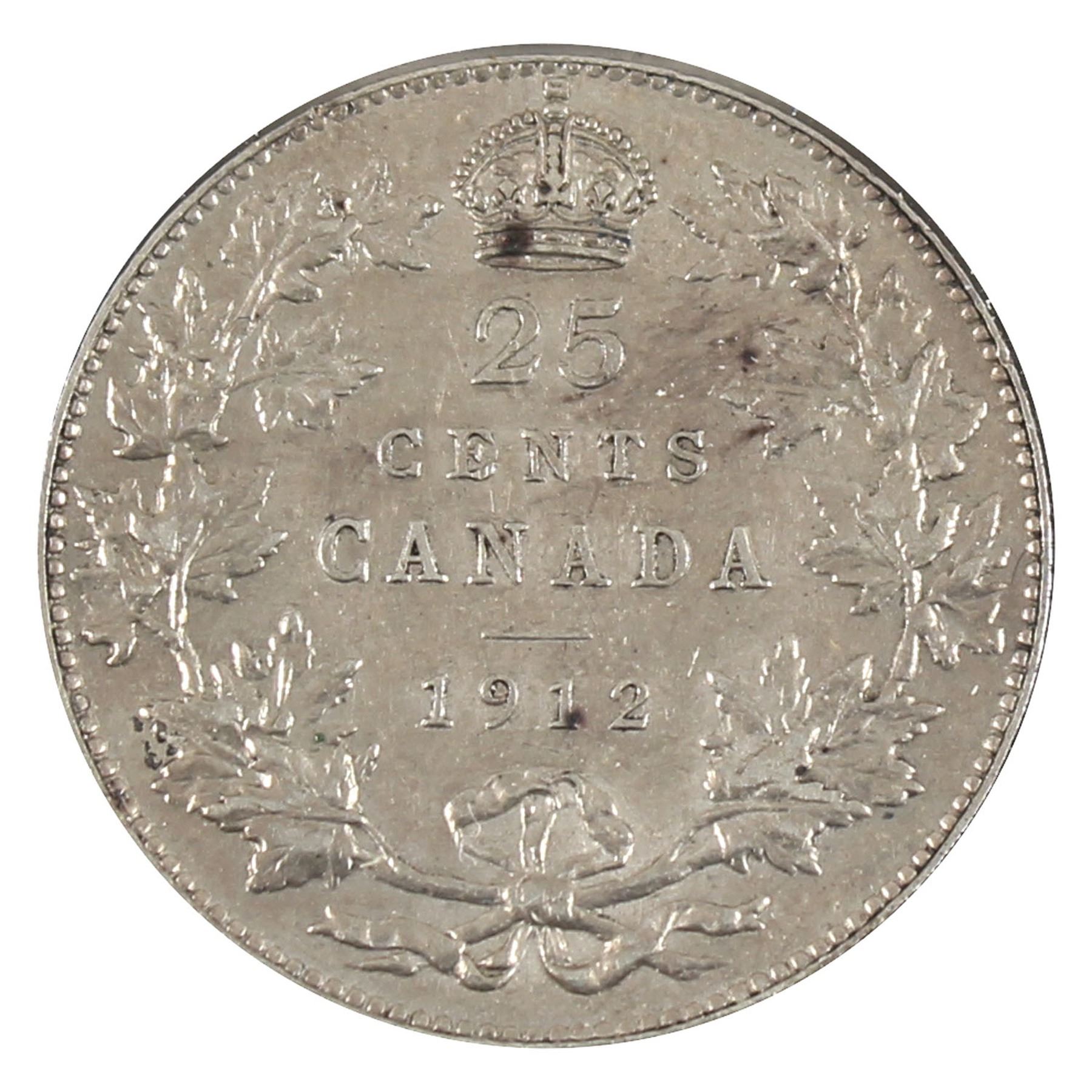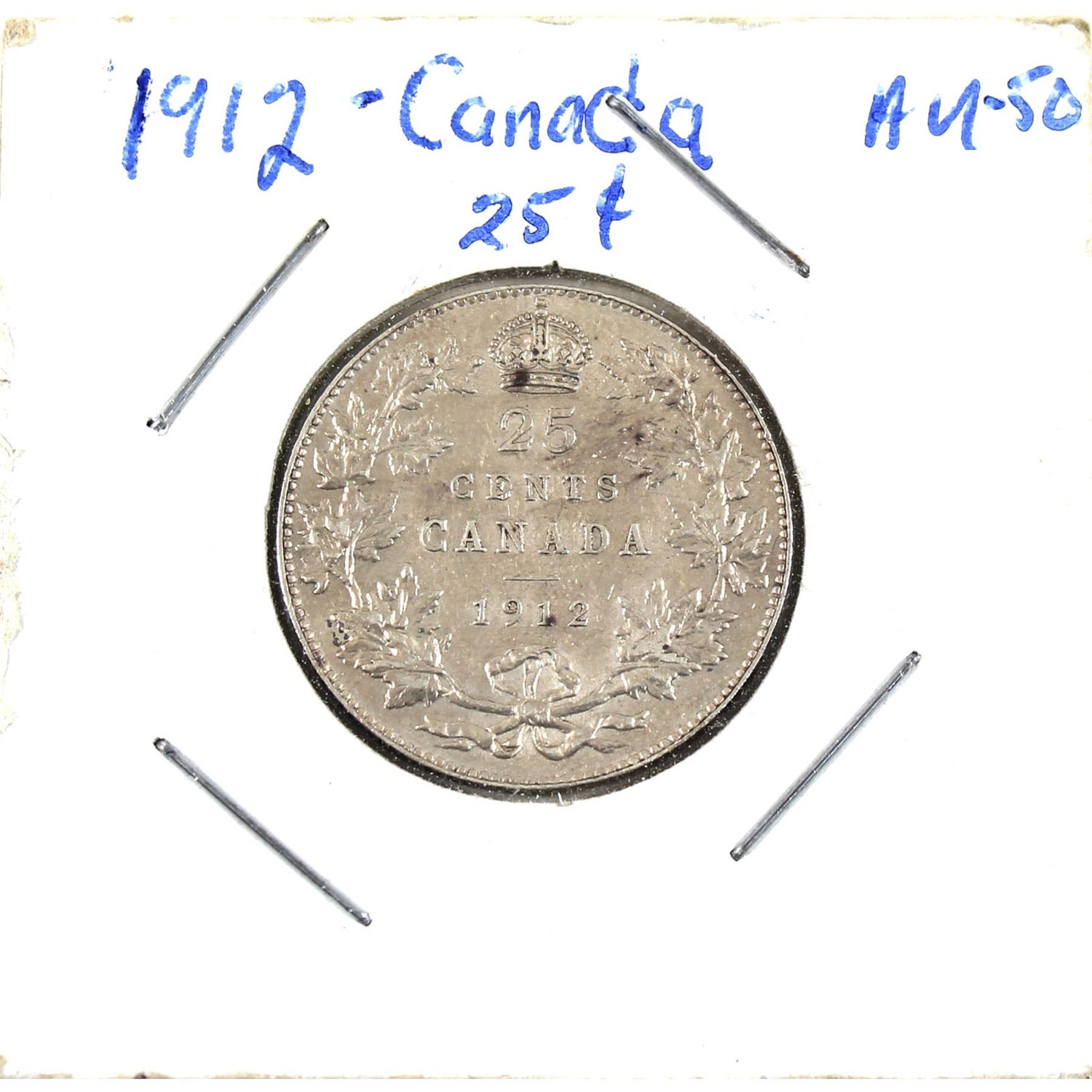 25-cent 1912 in About AU condition. A bright lustrous coin with original mint luster throughout.