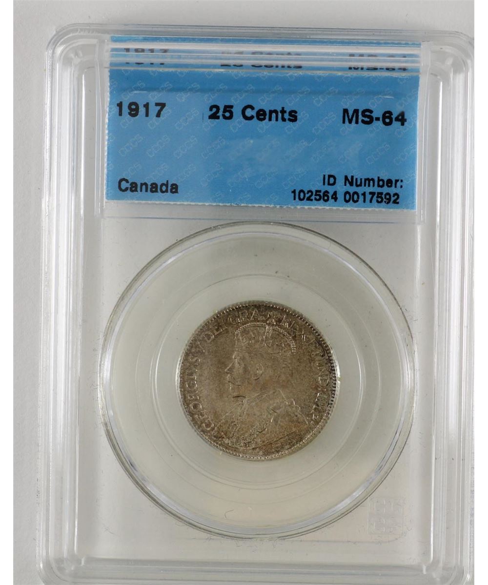25-cent 1917 CCCS MS64, cross graded ICCS MS64. Nice golden toning.