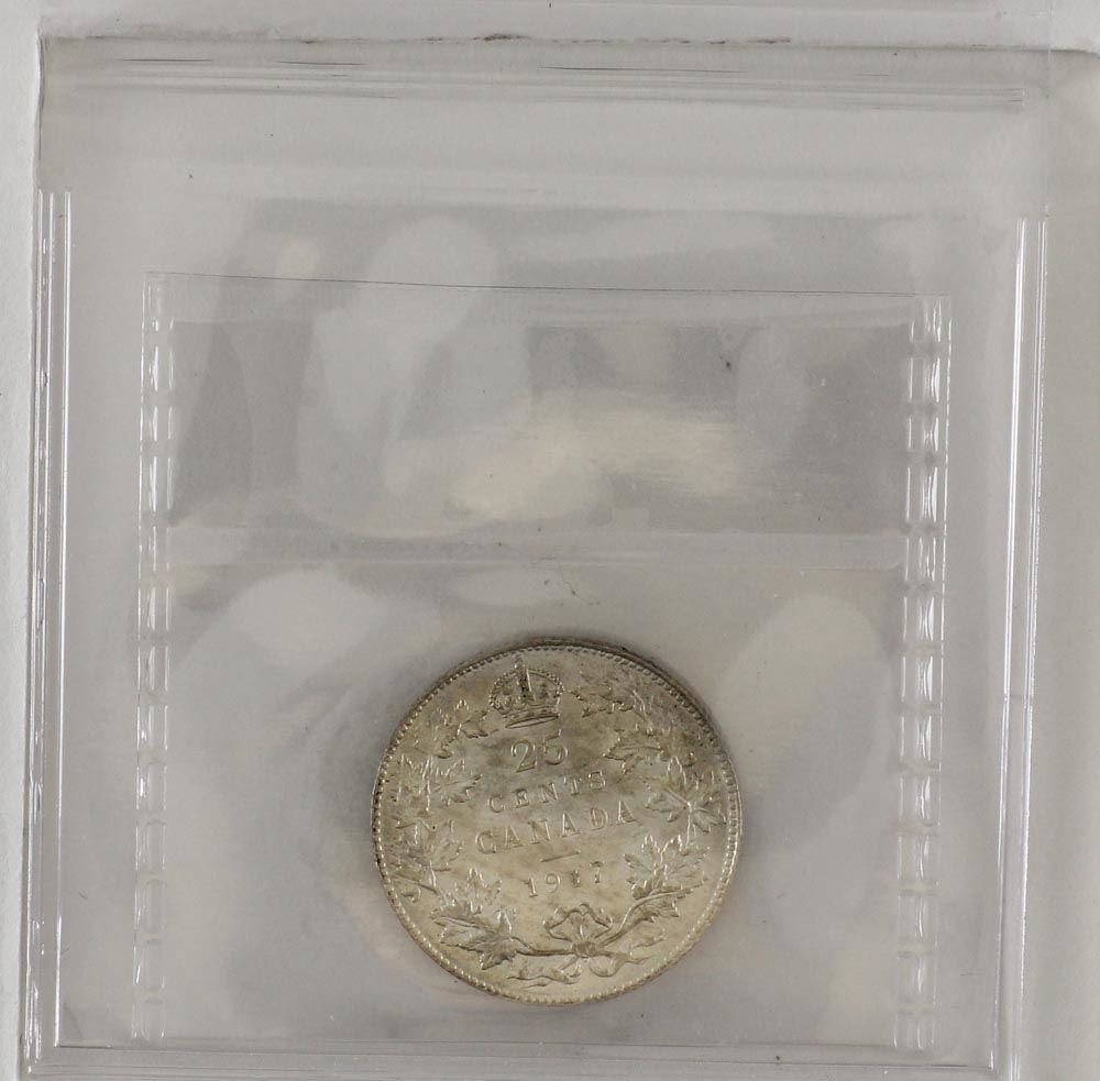 25-cent 1917 ICCS Certified MS60. Bold details with underlying luster.