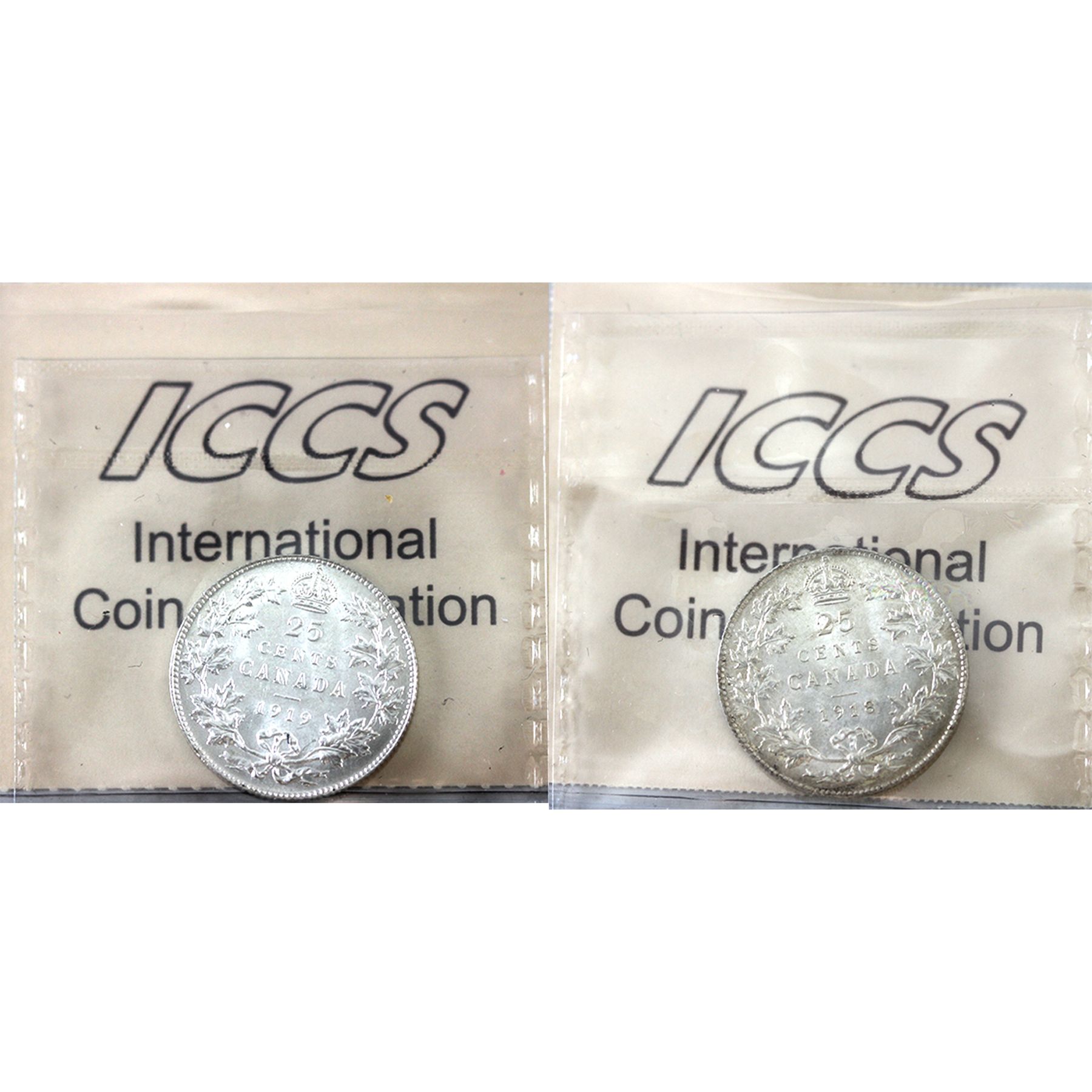 25-cent 1918, 1919 ICCS MS63. 2pcs.