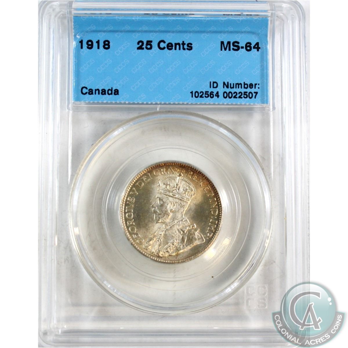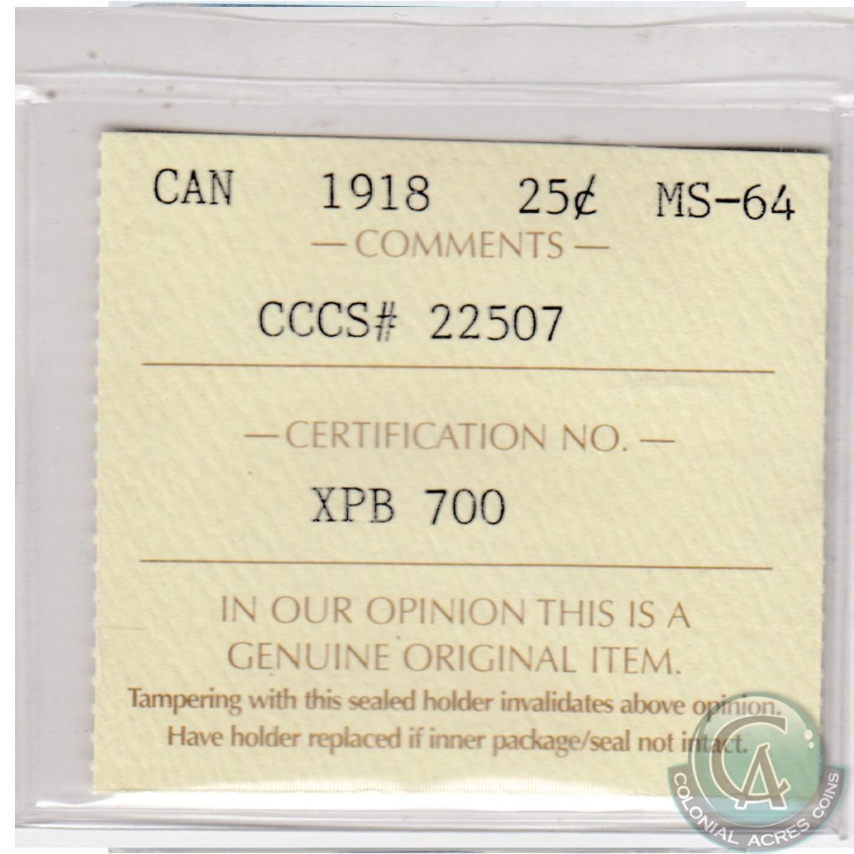 25-cent 1918 ICCS/CCCS Certified MS-64 (Cross Graded)