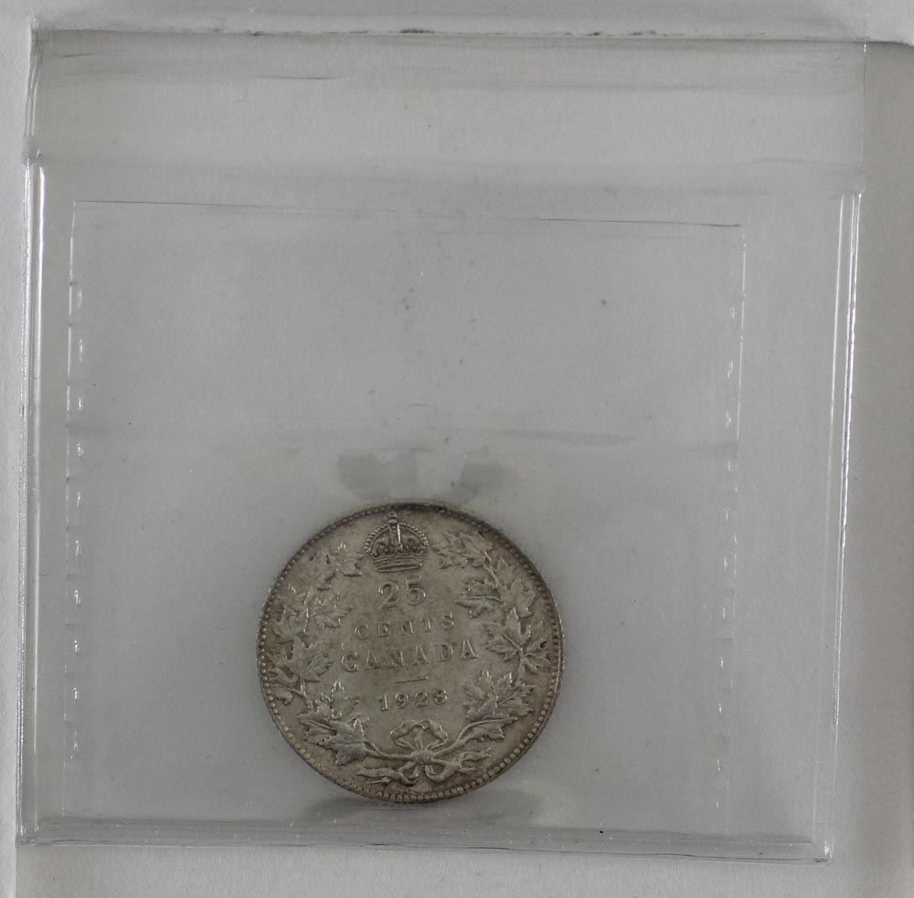 25-cent 1928 ICCS MS65. Attractive coin with just a hint of golden toning on the reverse. Top 10 census!