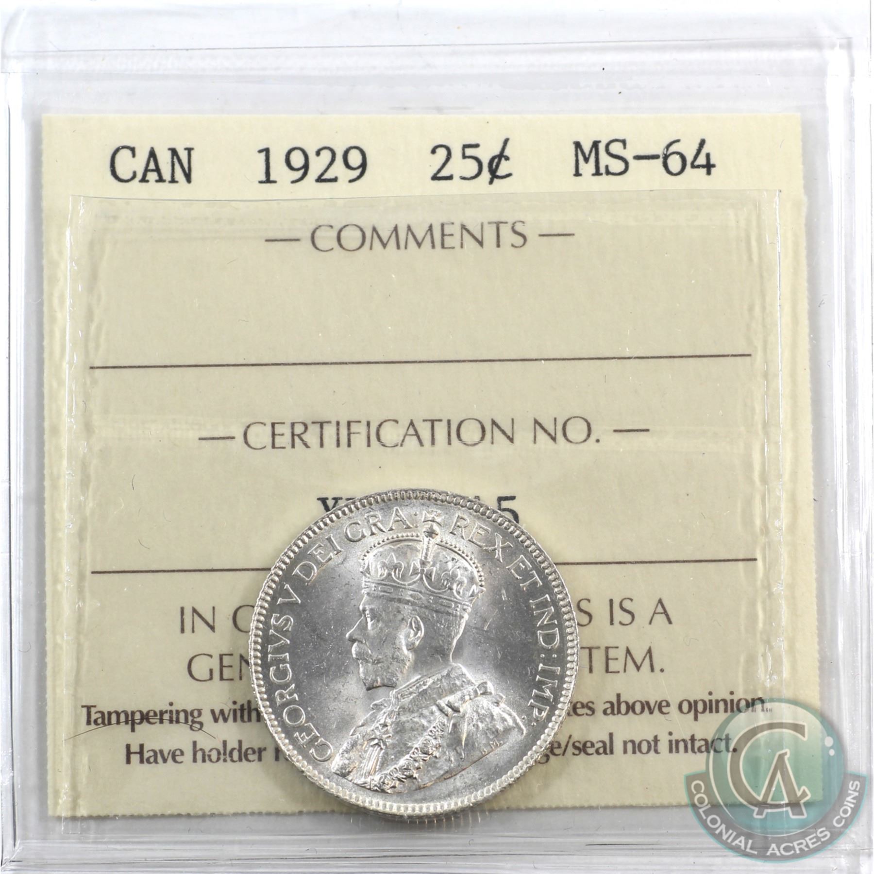 25-cent 1929 ICCS Certified MS-64. Blast white with such a vibrant strike that makes it feel like a higher grade.