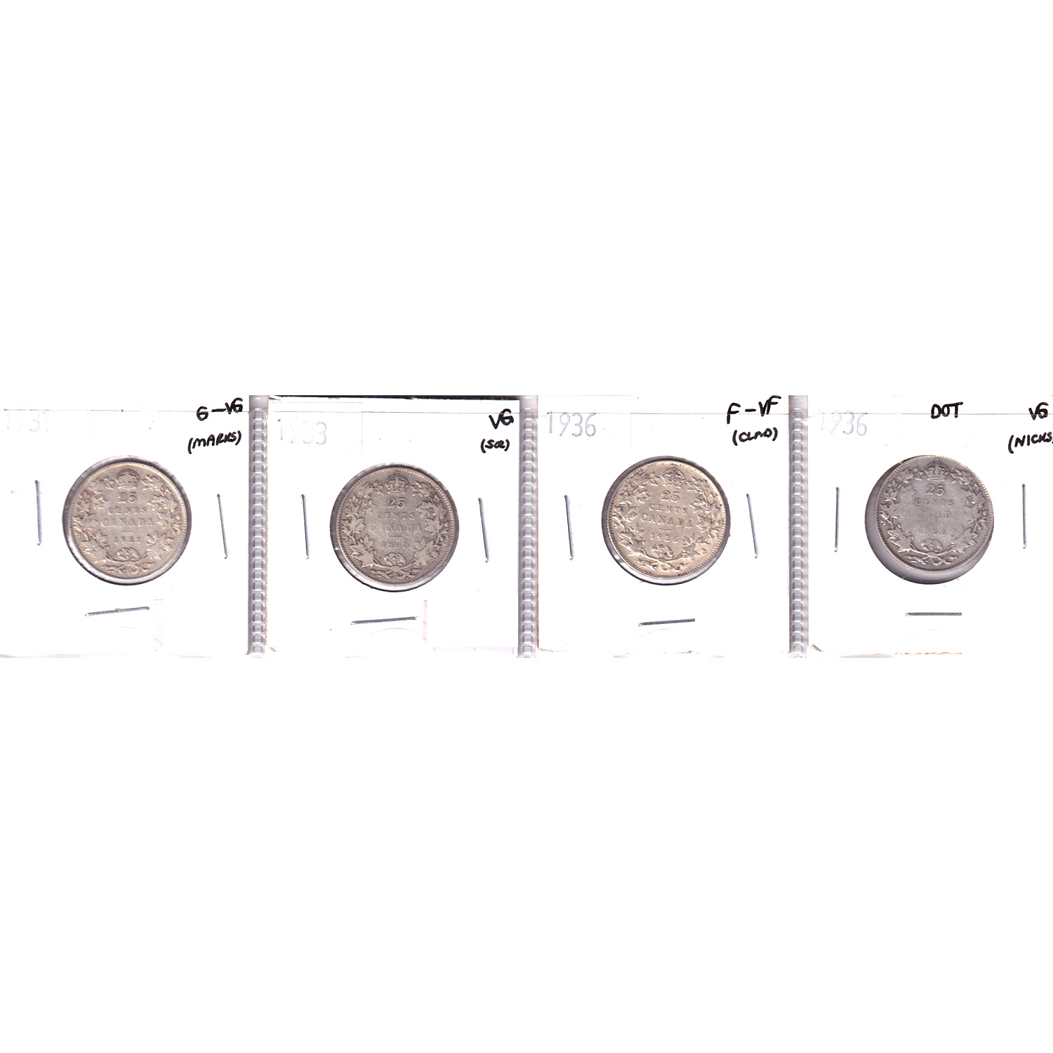 INCLUDES: 1931 G-VG, 1933 VG, 1936 F-VF & 1936 Dot VG. 4pcs.