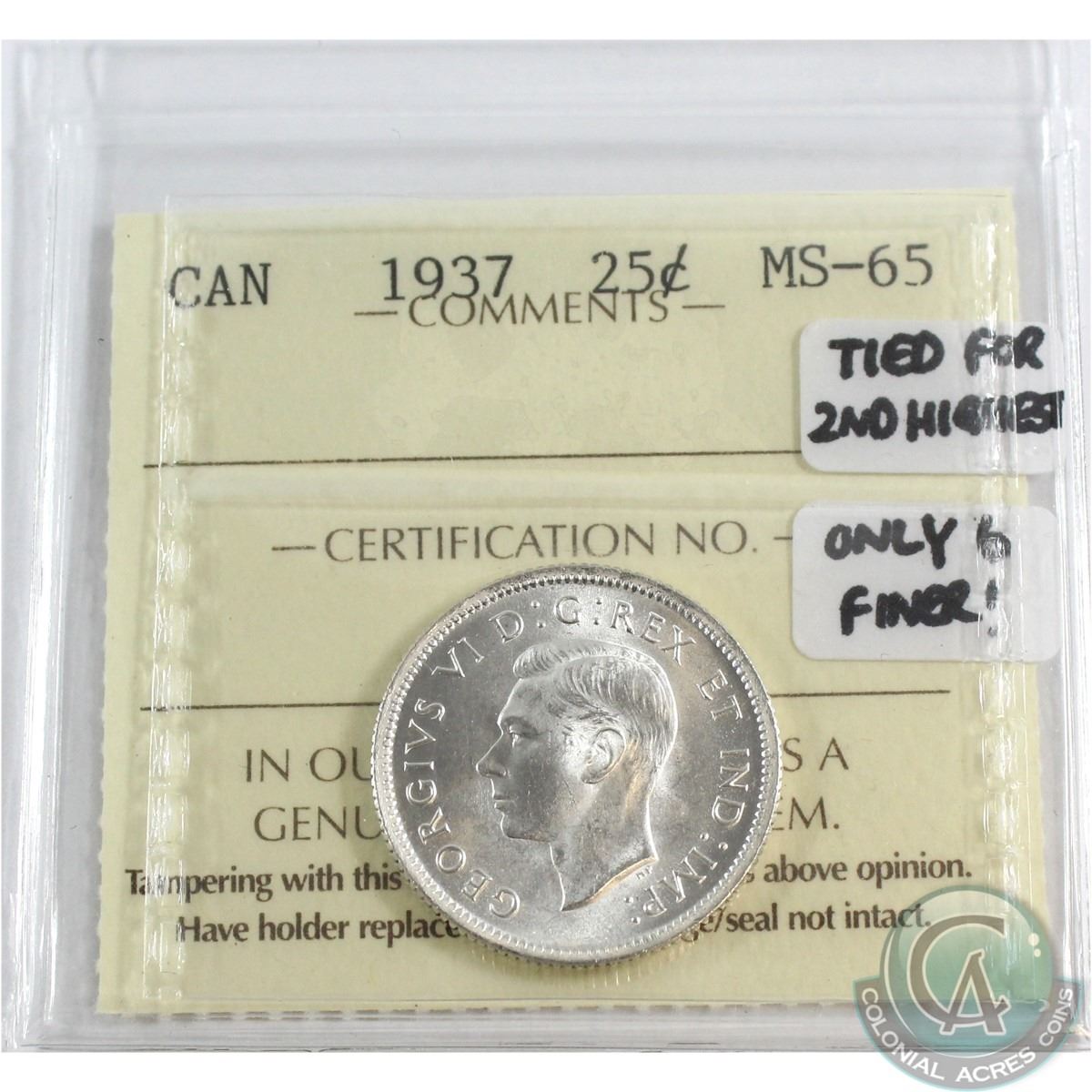 25-cent 1937 ICCS Certified MS-65. Tied for 2nd highest grade by ICCS.