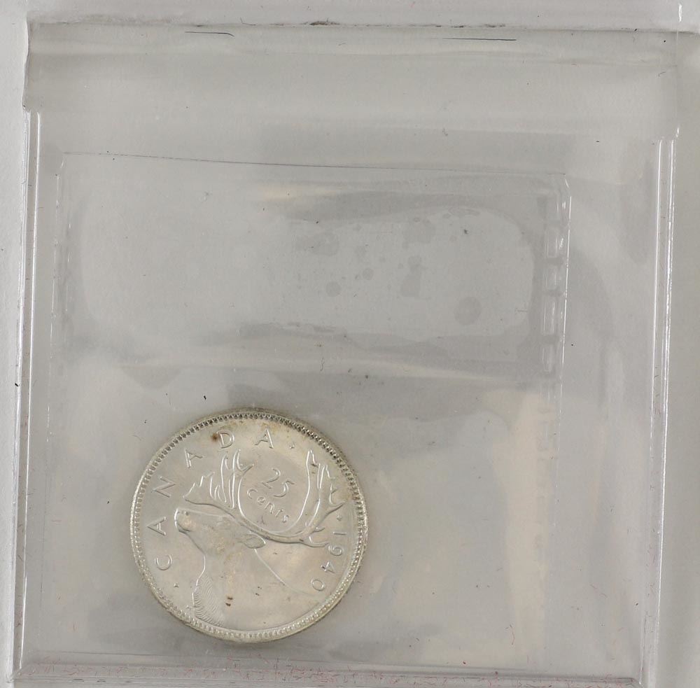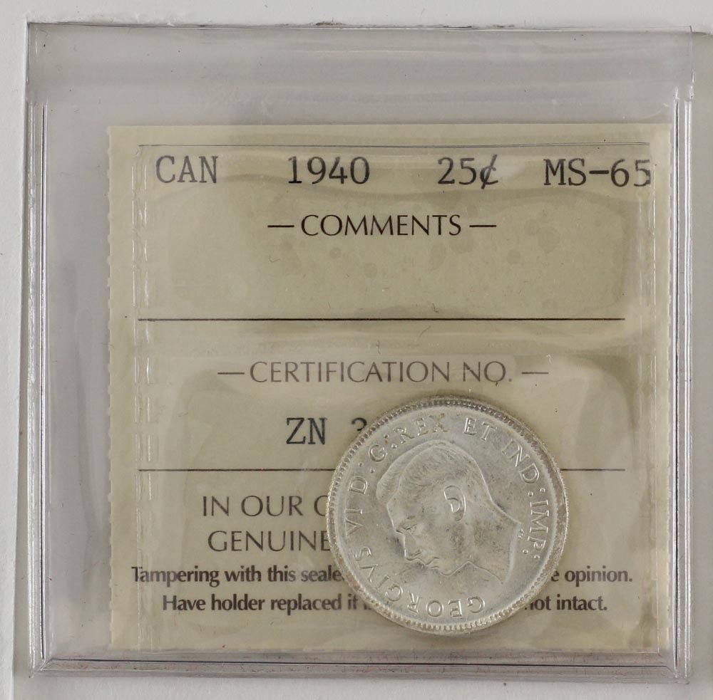 25-cent 1940 ICCS Certified MS65. A soft white coin with hints of golden toning.