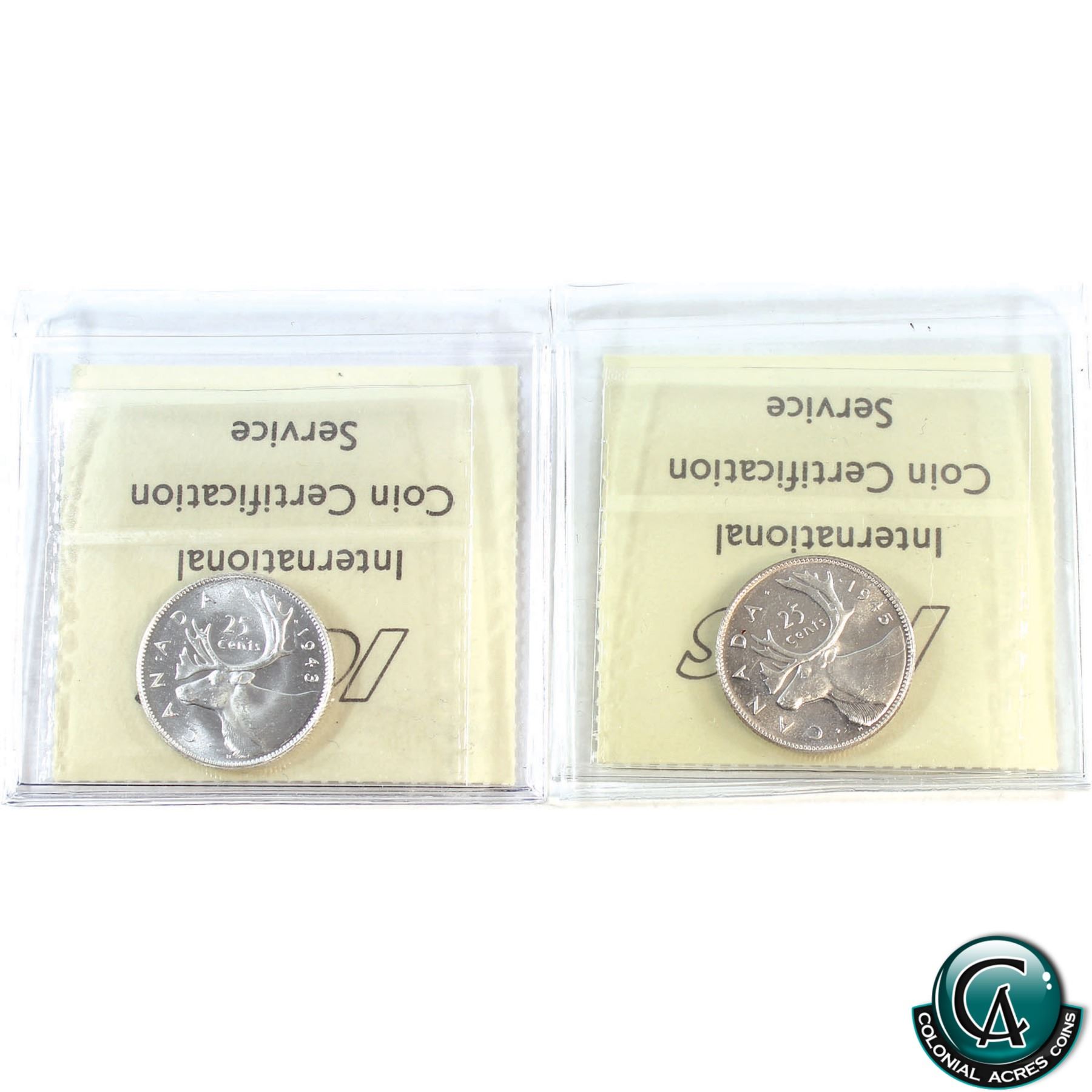 25-cent 1943 & 1945 ICCS Certified MS-64. 2pcs.