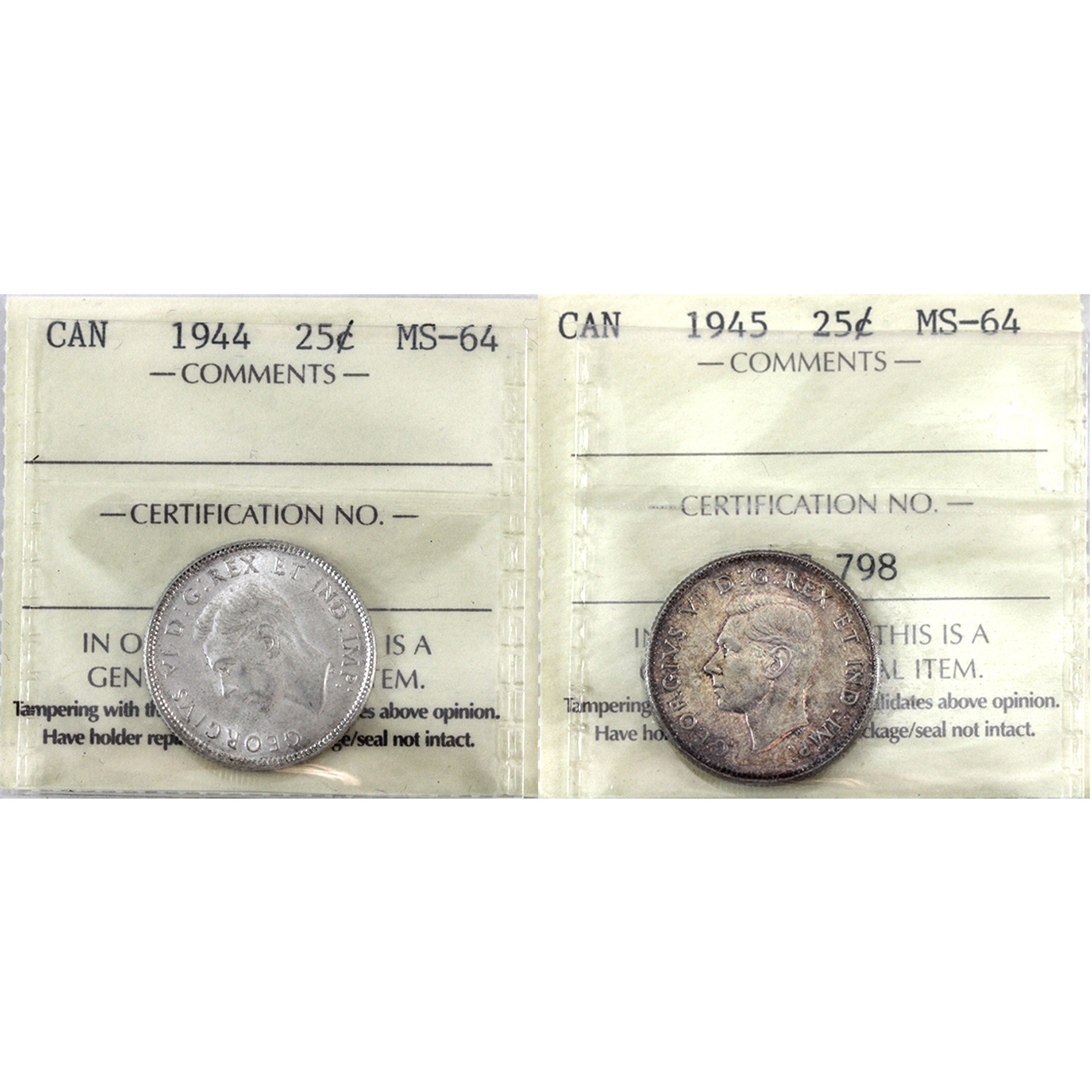 25-cent 1944 & 1945 ICCS MS64. 2pcs