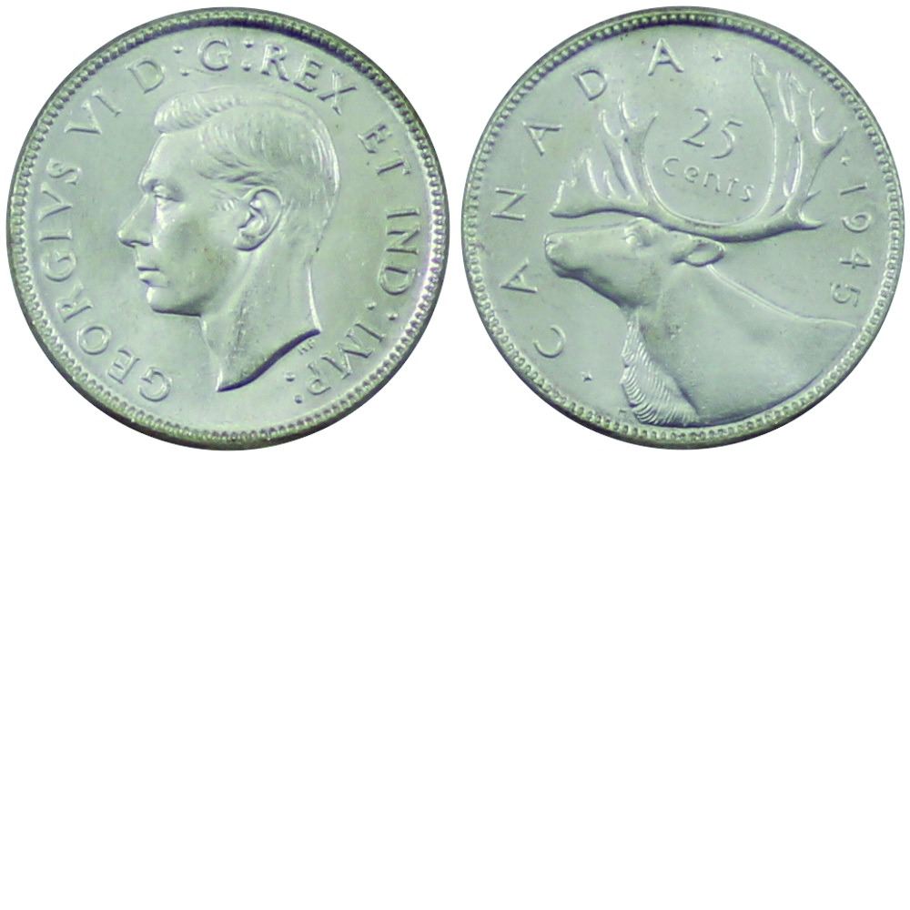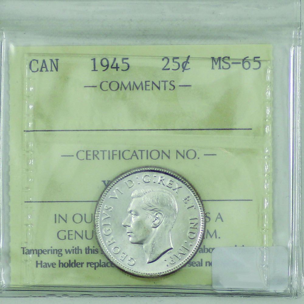 25-cent 1945 ICCS Certified MS-65! A nice flashy coin with a hint of Cameo.