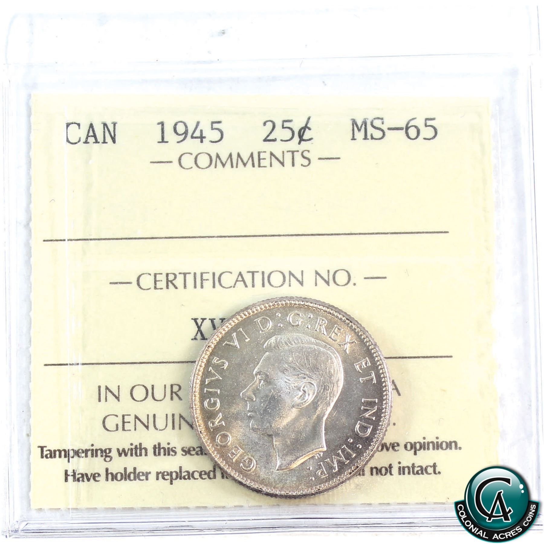 25-cent 1945 ICCS Certified MS-65