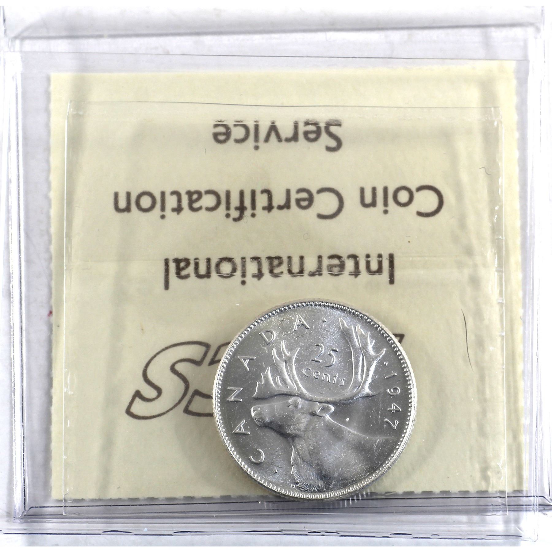 25-cent 1947 Dot ICCS Certified MS-63. Nice white high grade example of a scarcer variety.