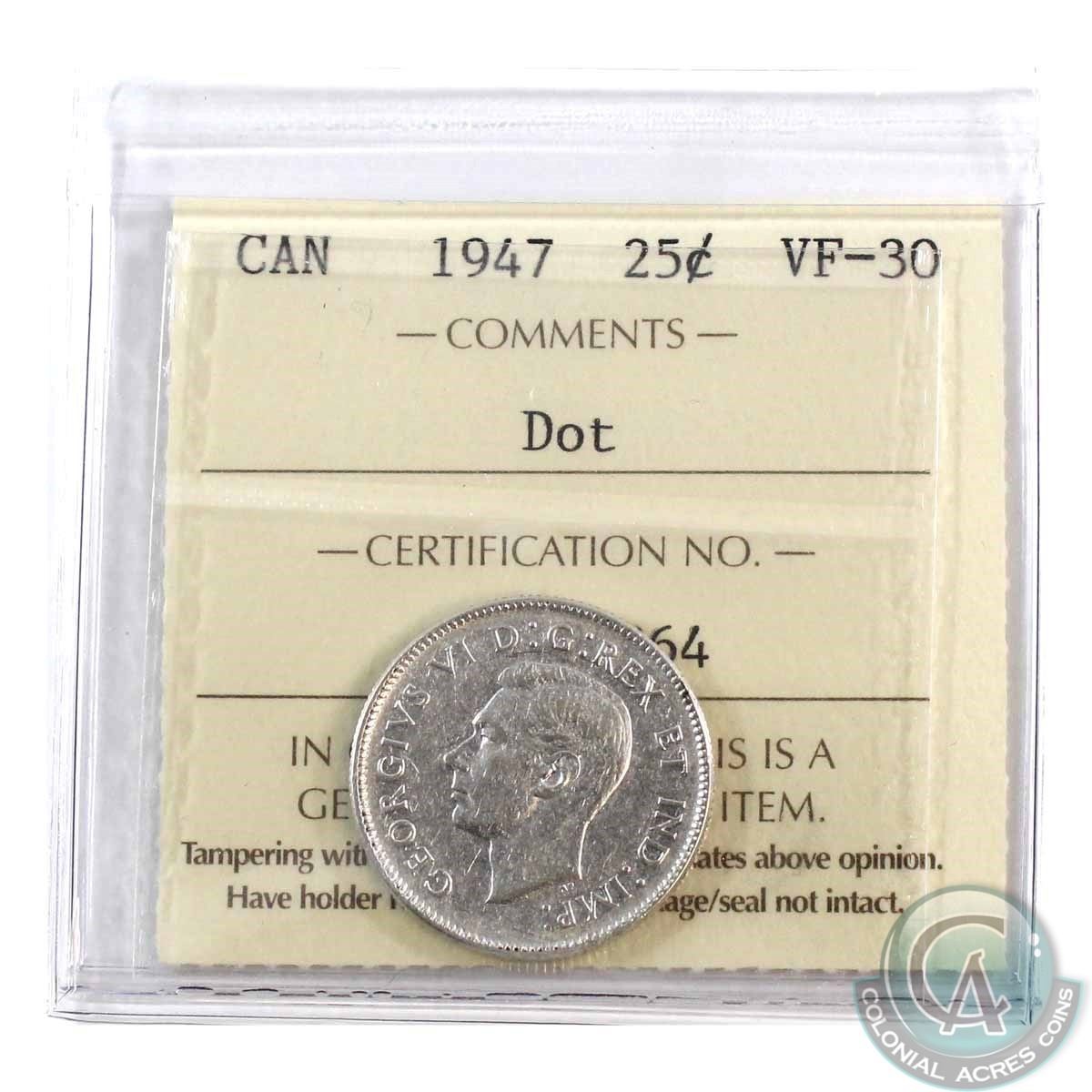 25-cent 1947 Dot, ICCS Certified VF-30