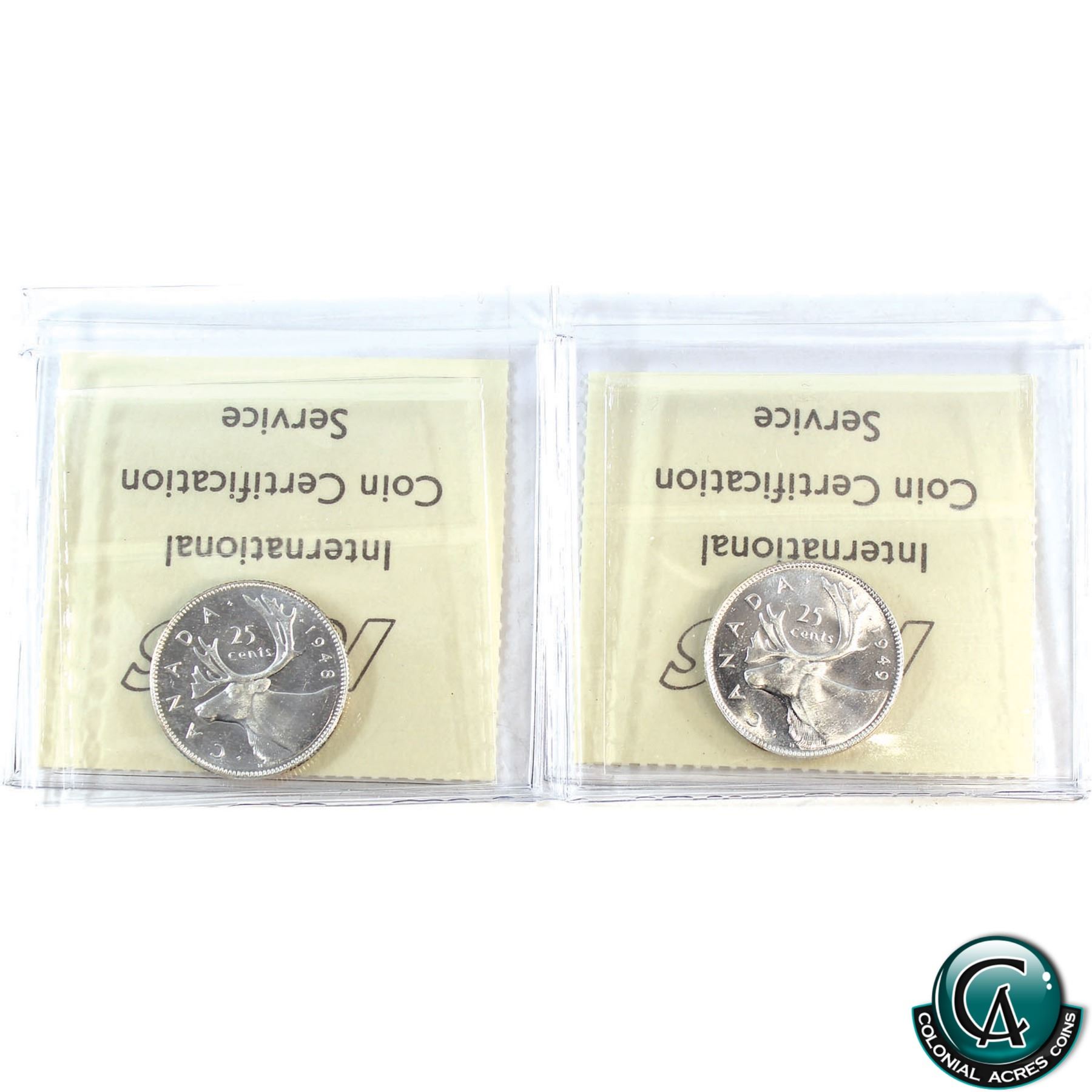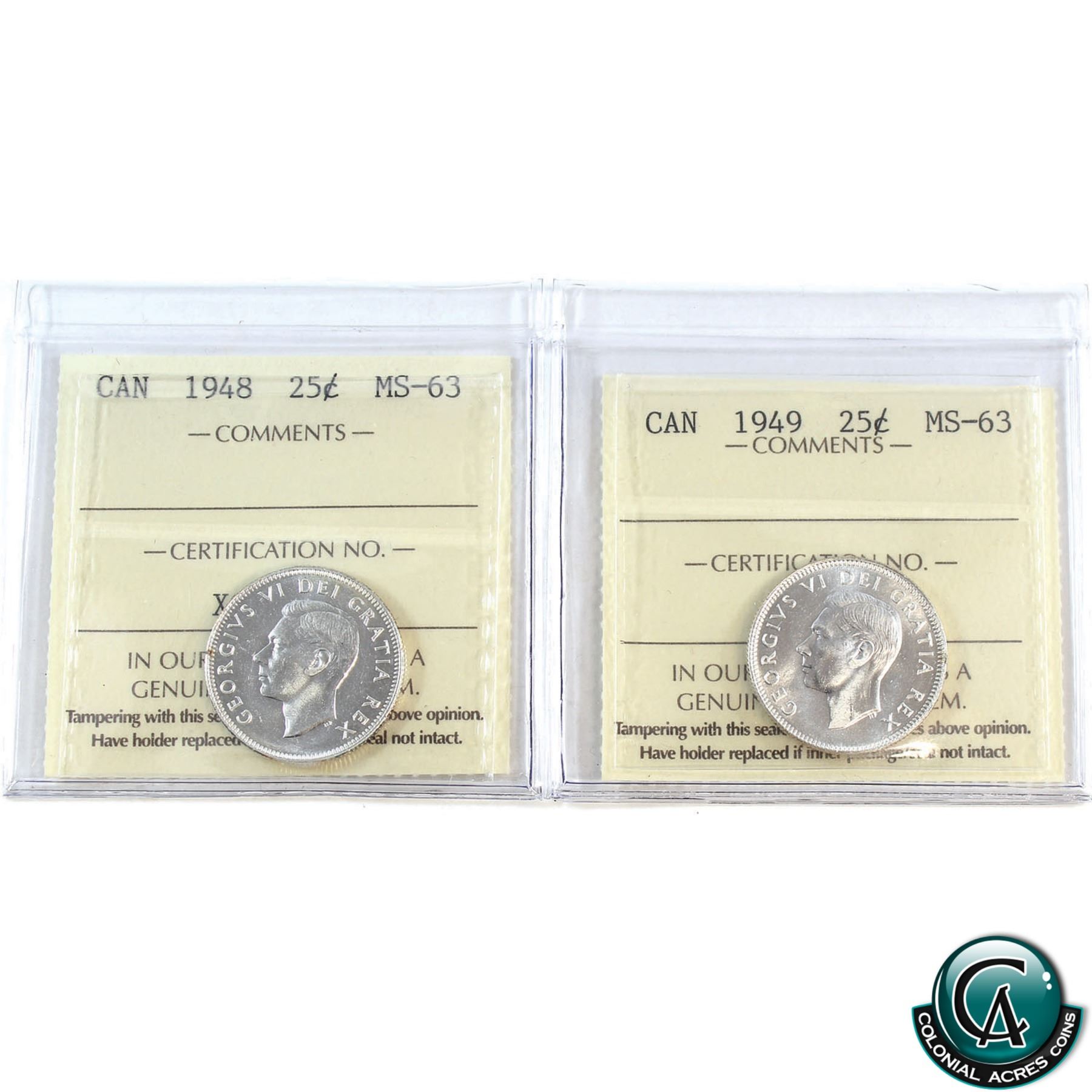 25-cent 1948 & 1949 ICCS Certified MS-63. 2pcs.