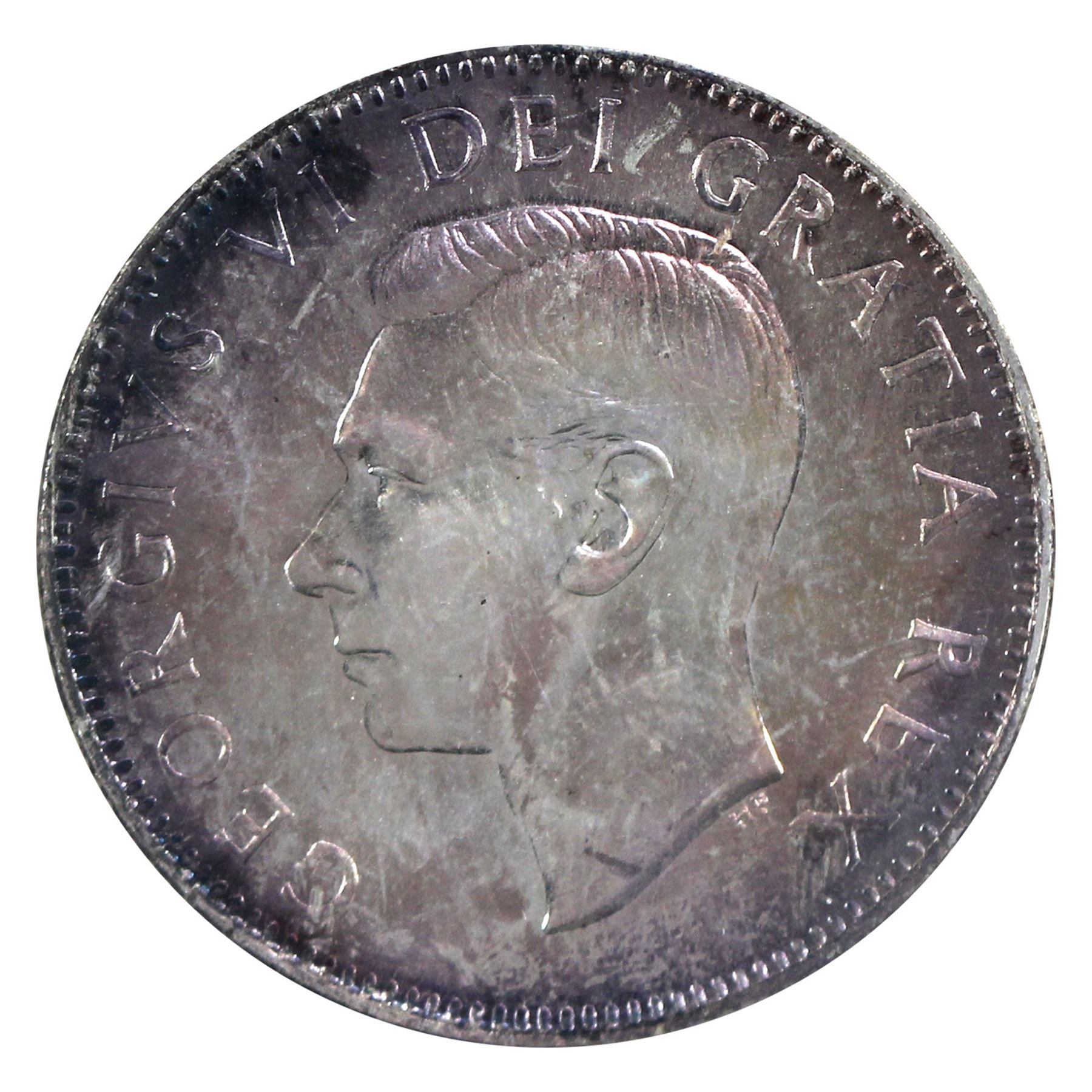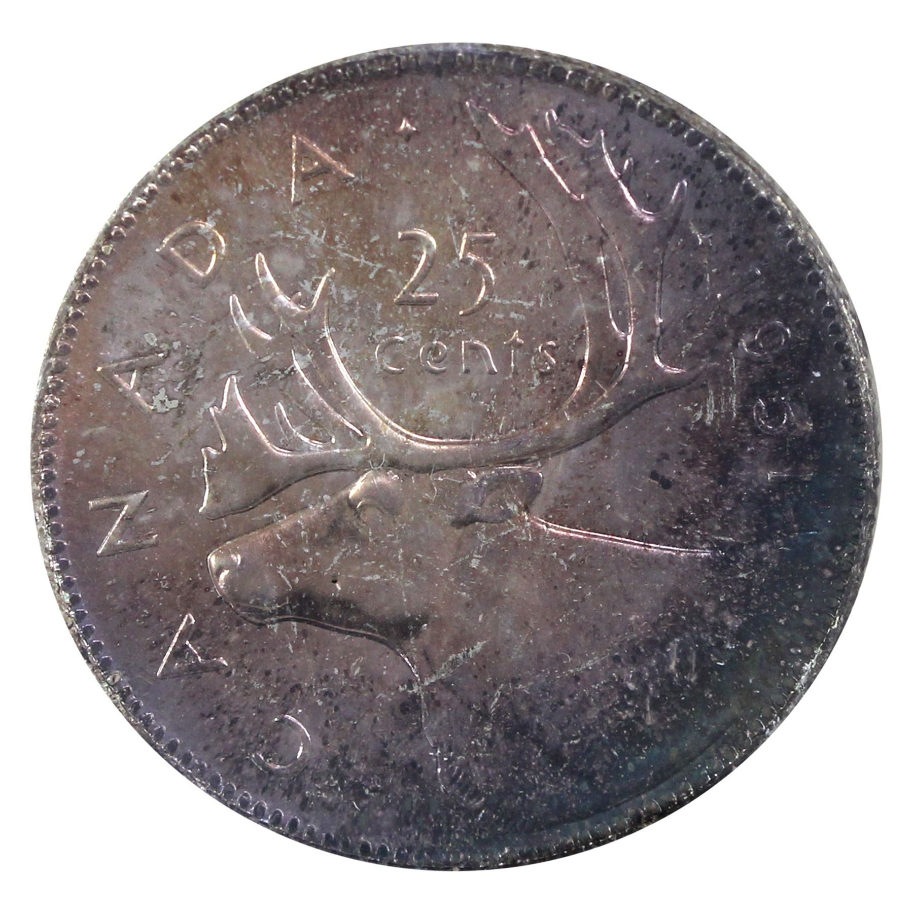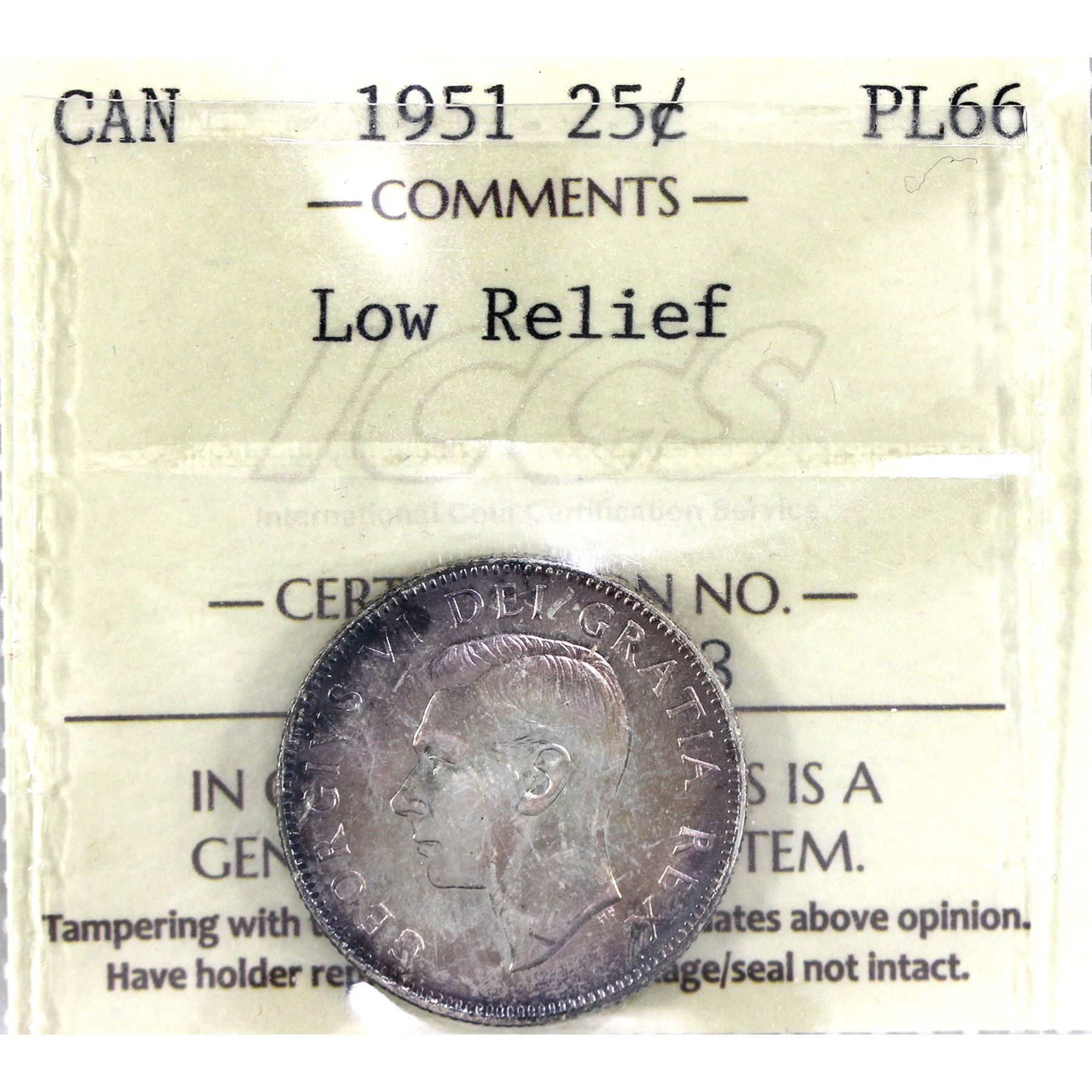 25-cent 1951 Low Relief ICCS Certified PL66. Attractive Natural Toning in Gold & Violet Hues