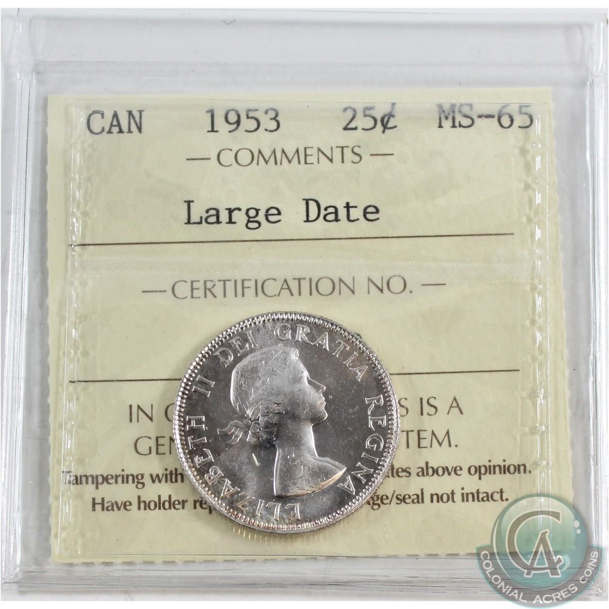 25-cent 1953 Large Date ICCS Certified MS-65