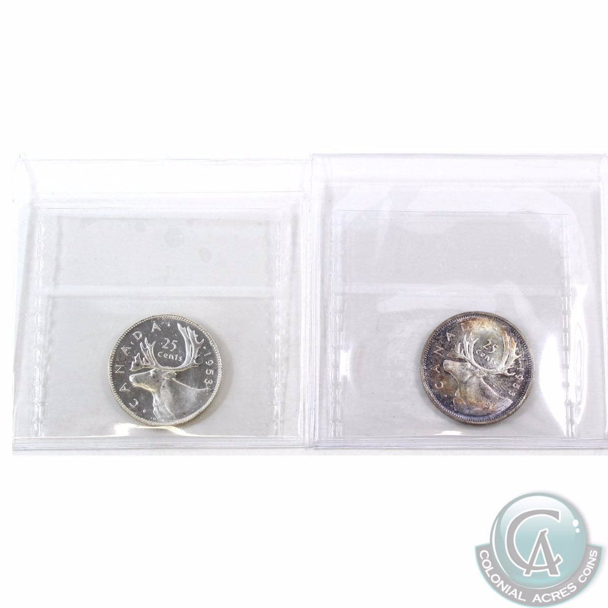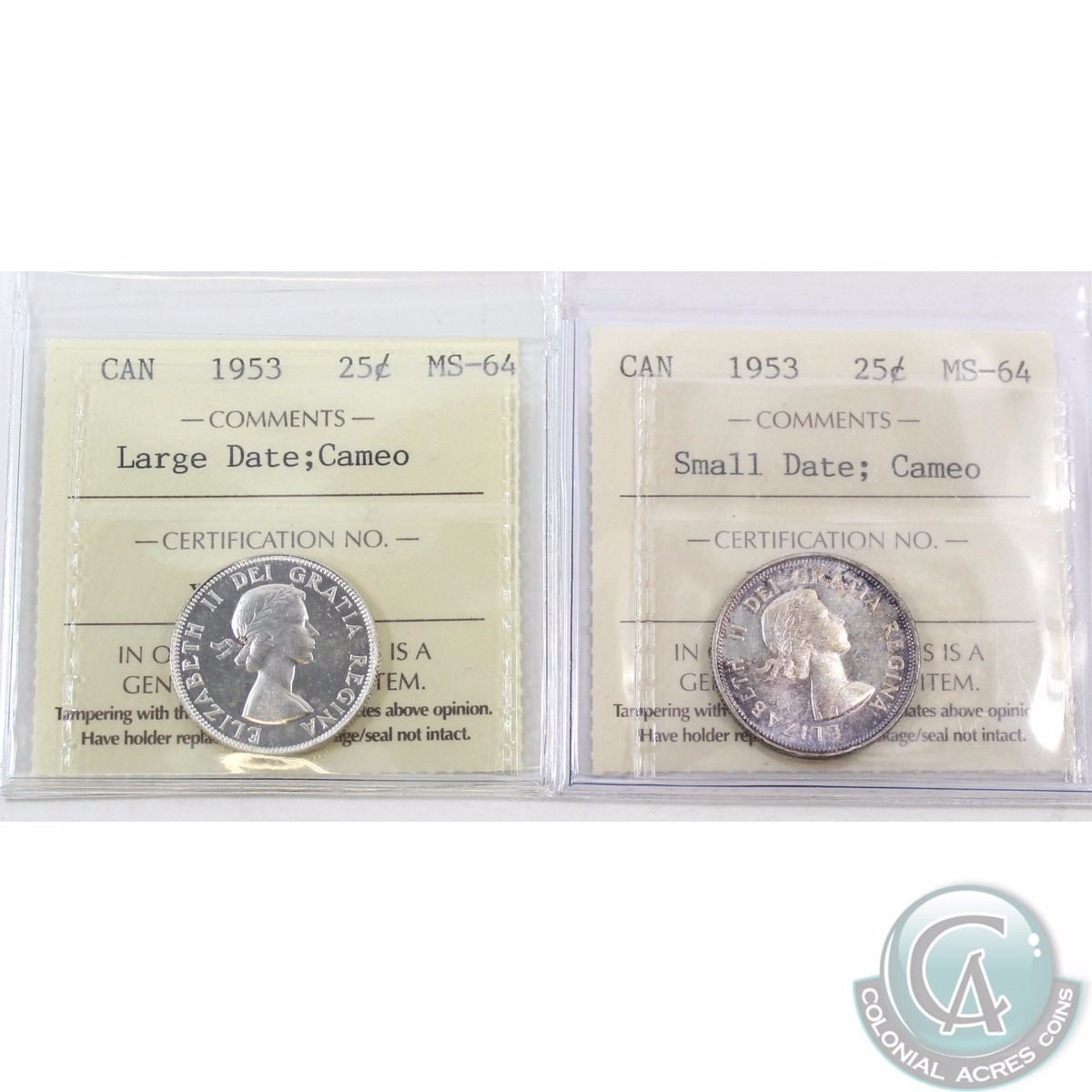 25-cent 1953 Small Date & 1953 Large Date ICCS Certified MS-64; Cameo. 2pcs