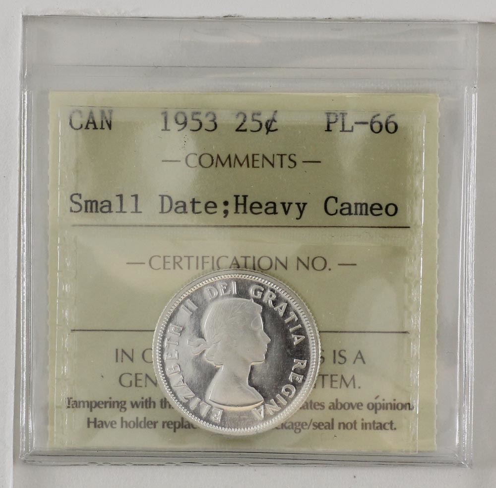 25-cent 1953 Small Date ICCS PL66 Heavy Cameo