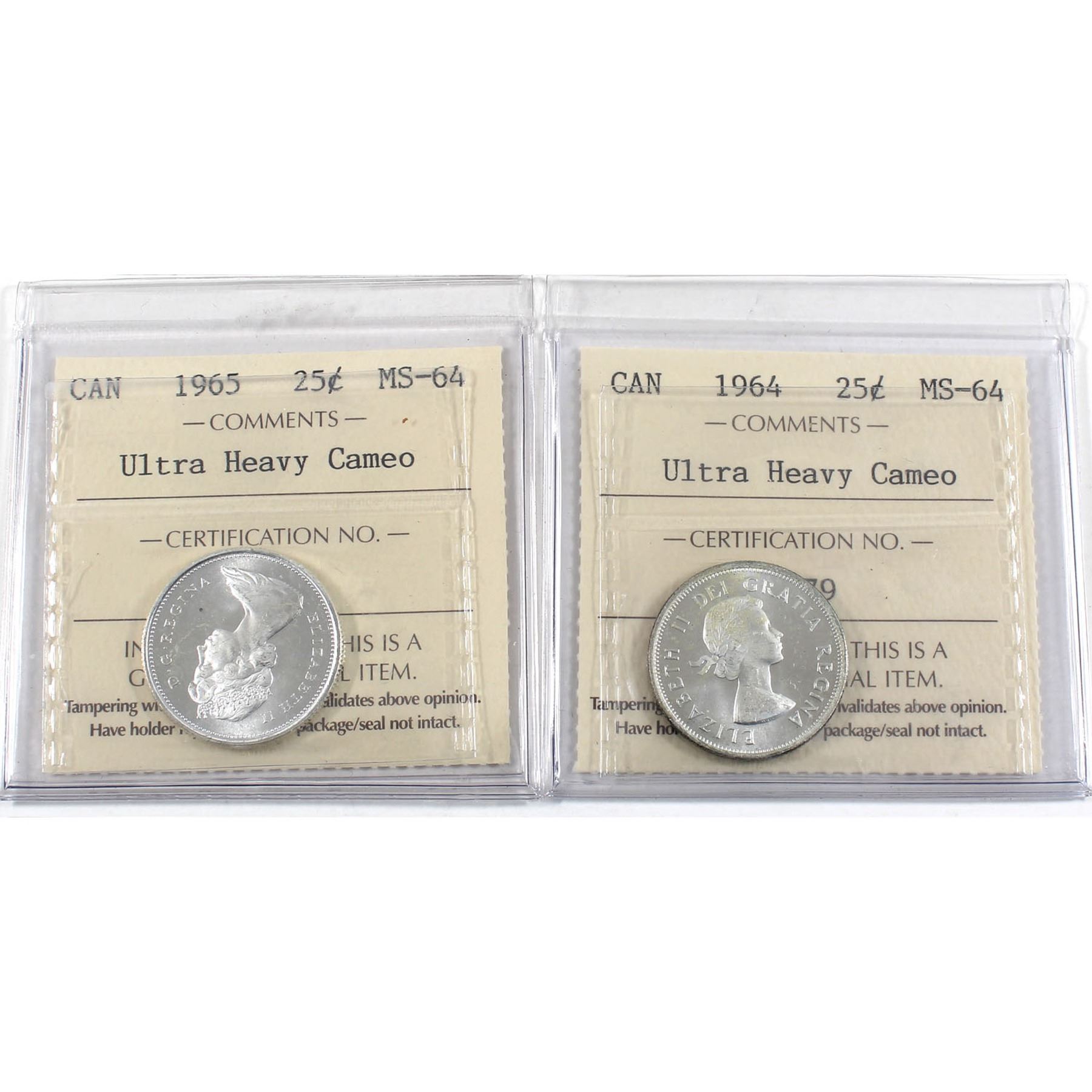 25-cent 1964 & 1965 both ICCS Certified MS-64 ULTRA HEAVY CAMEO!
