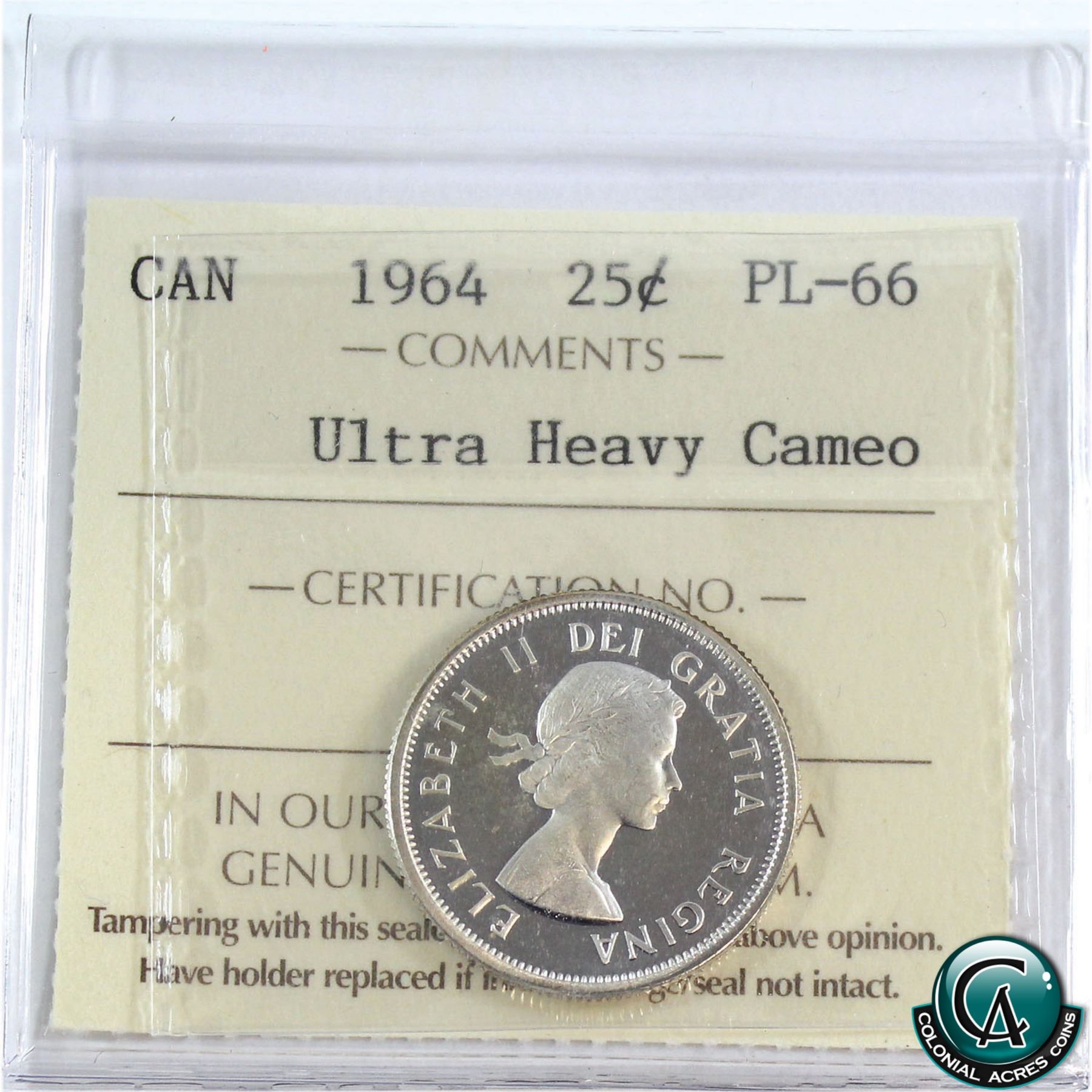 25-cent 1964 ICCS Certified PL-66 Ultra Heavy Cameo!